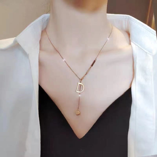 925 Sterling Silver Gold Color Necklace for Women Zirconia Pendant Long Strip Chain Clavicle Female Birthday Party Fine Jewelry