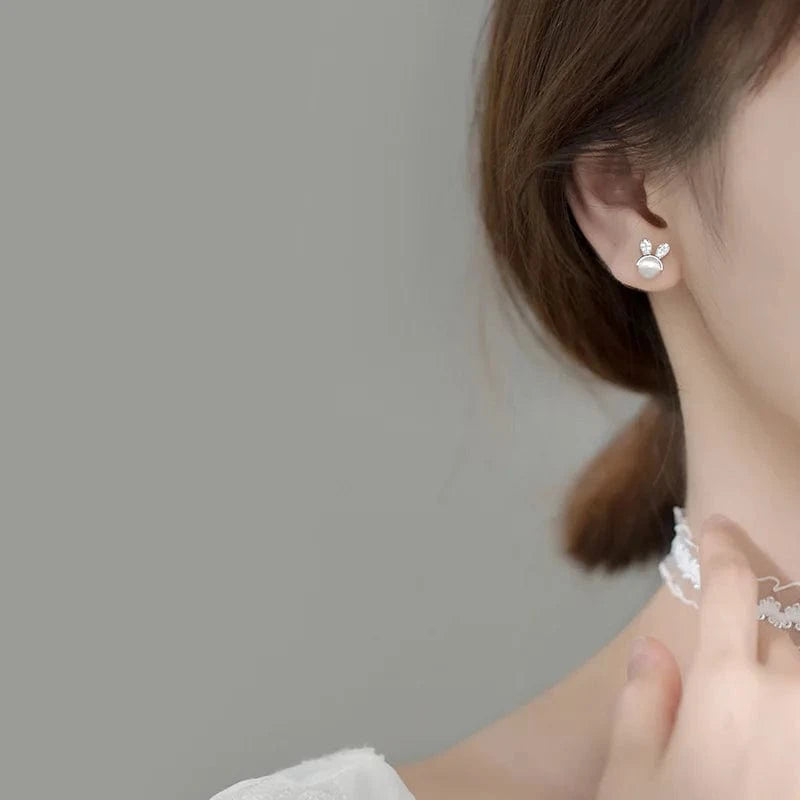 100% 925 Solid Real Sterling Silver Jewelry Fashion Cute Animal Rabbit Ear Stud Earring Gift for Girl Teens Lady