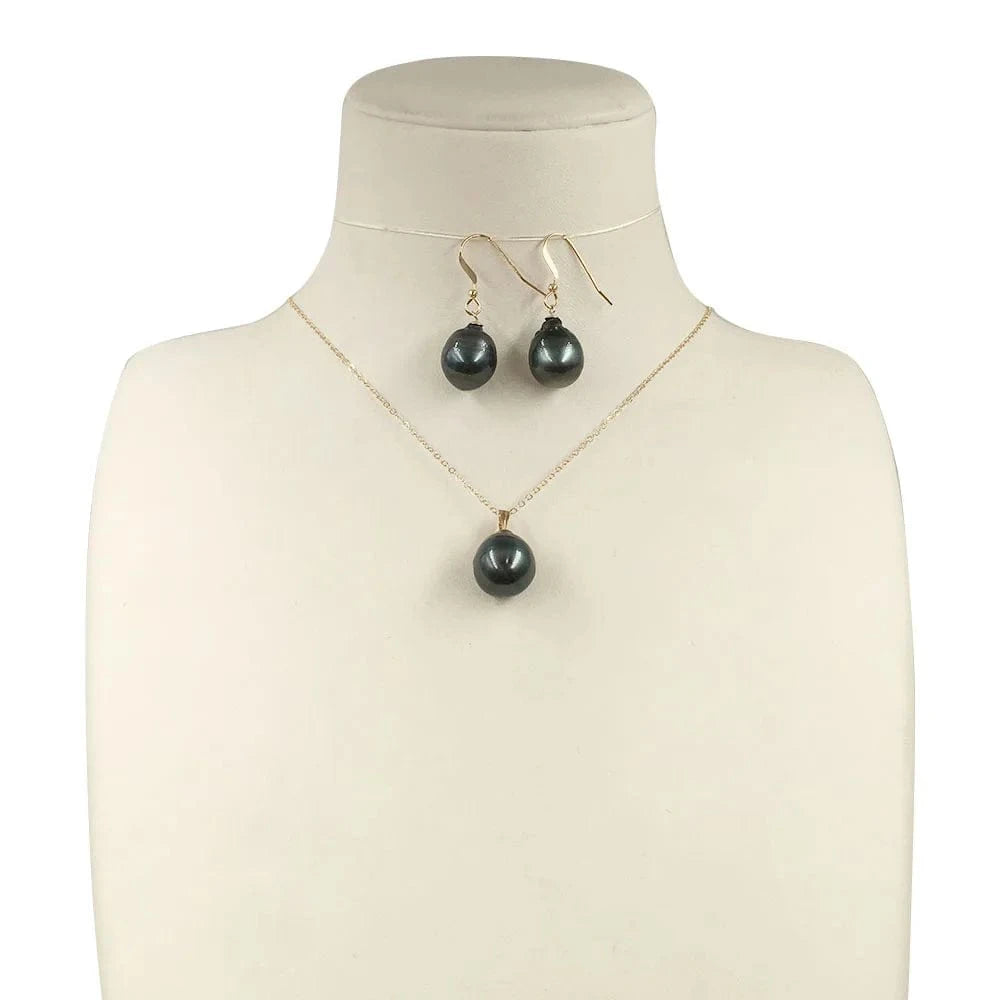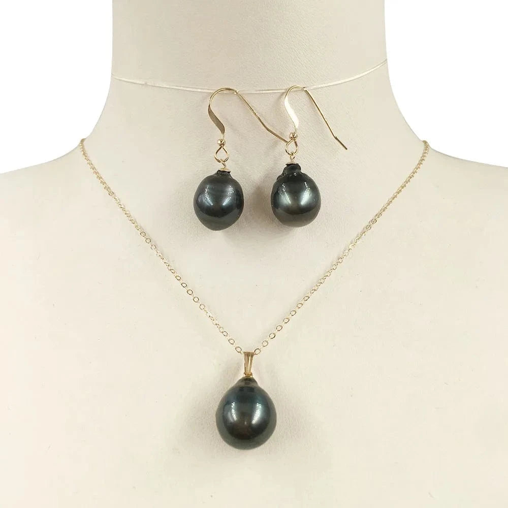 18 Inch 14K gold filled natural tahitian pearl jewelry set with earring+necklace ,baroque pearl sea salt pearl nature black