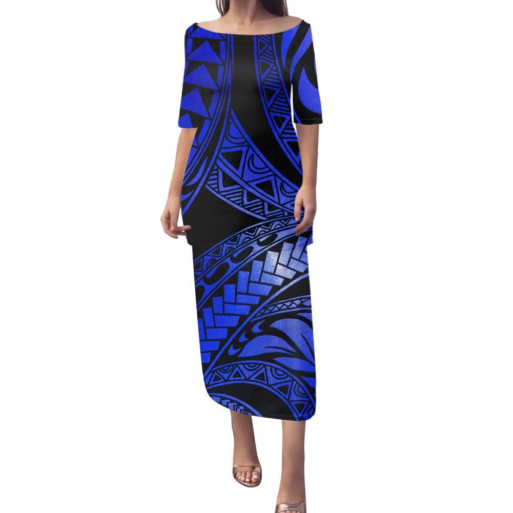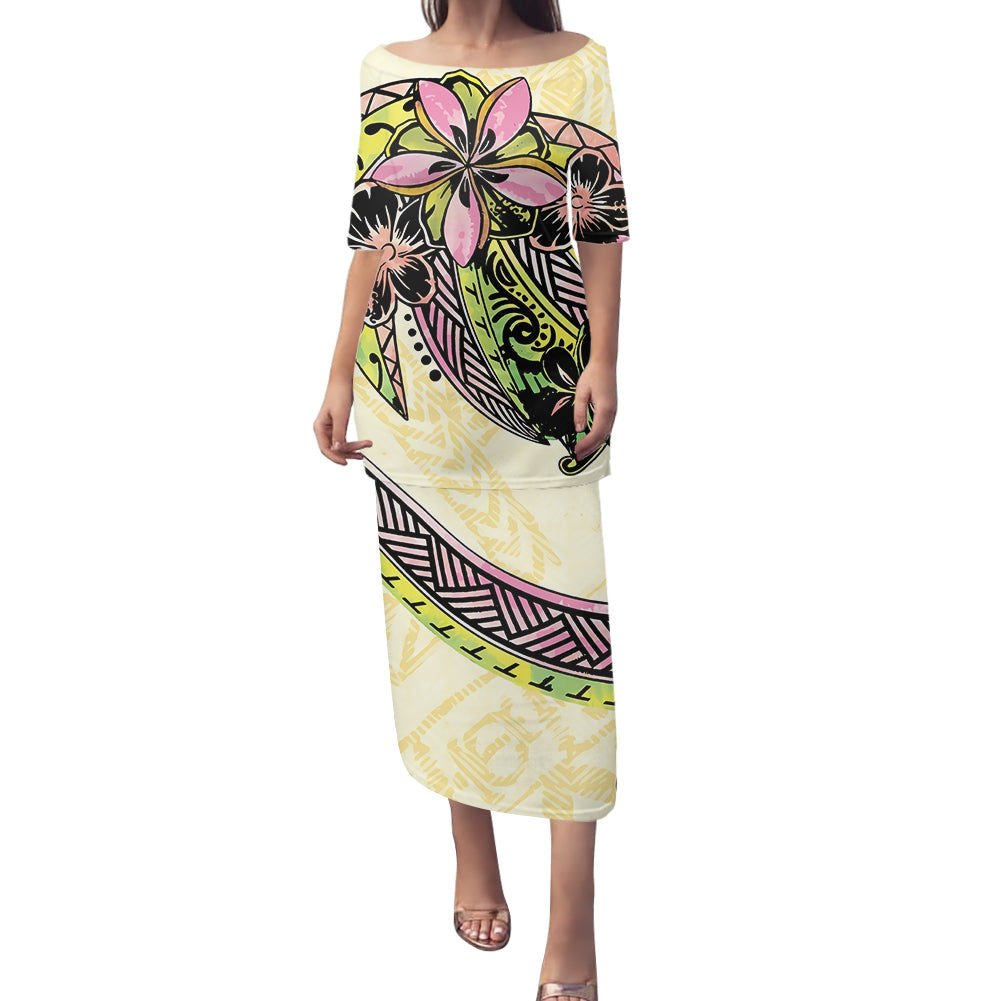 2-piece set Samoan Puletasi Dress Tradition Polynesian Print Mermaid Dresses Off Shoulder Half sleeve Puletasi Dresses for Women