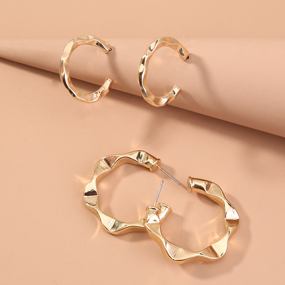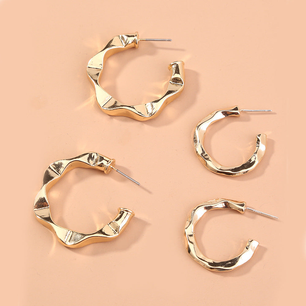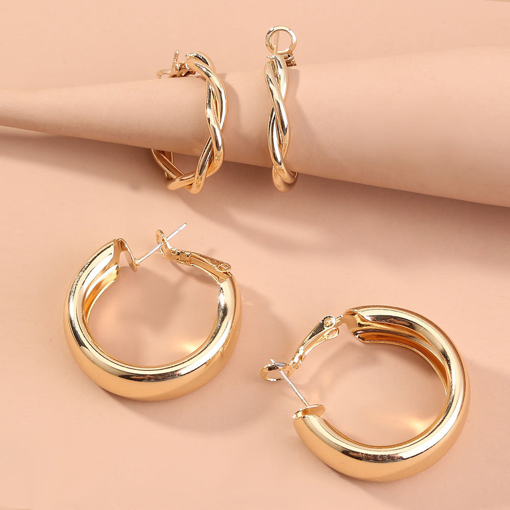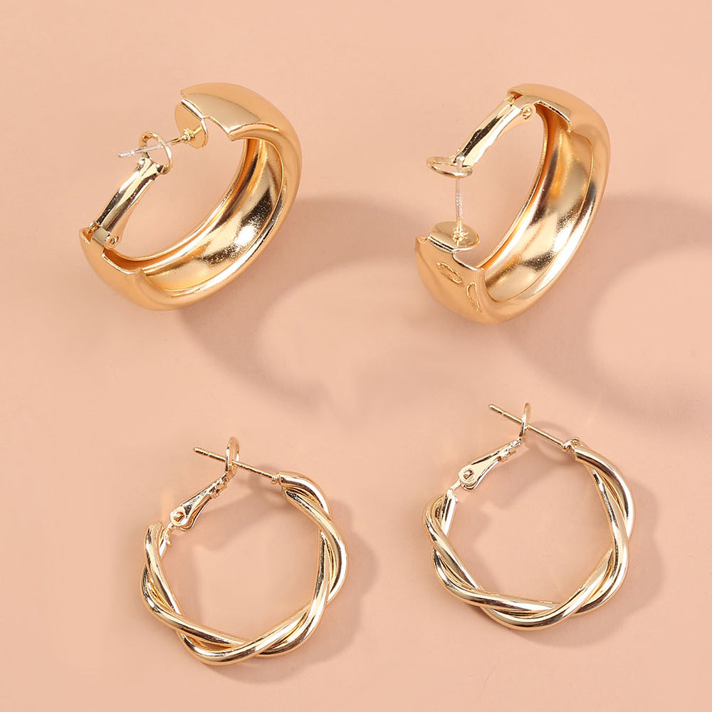 2 Sets Women's Minimalist C-shape Thick Hoop Earring Two Metals Strip Twist Earings Personality Jewelry