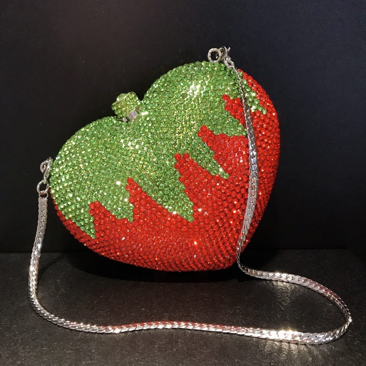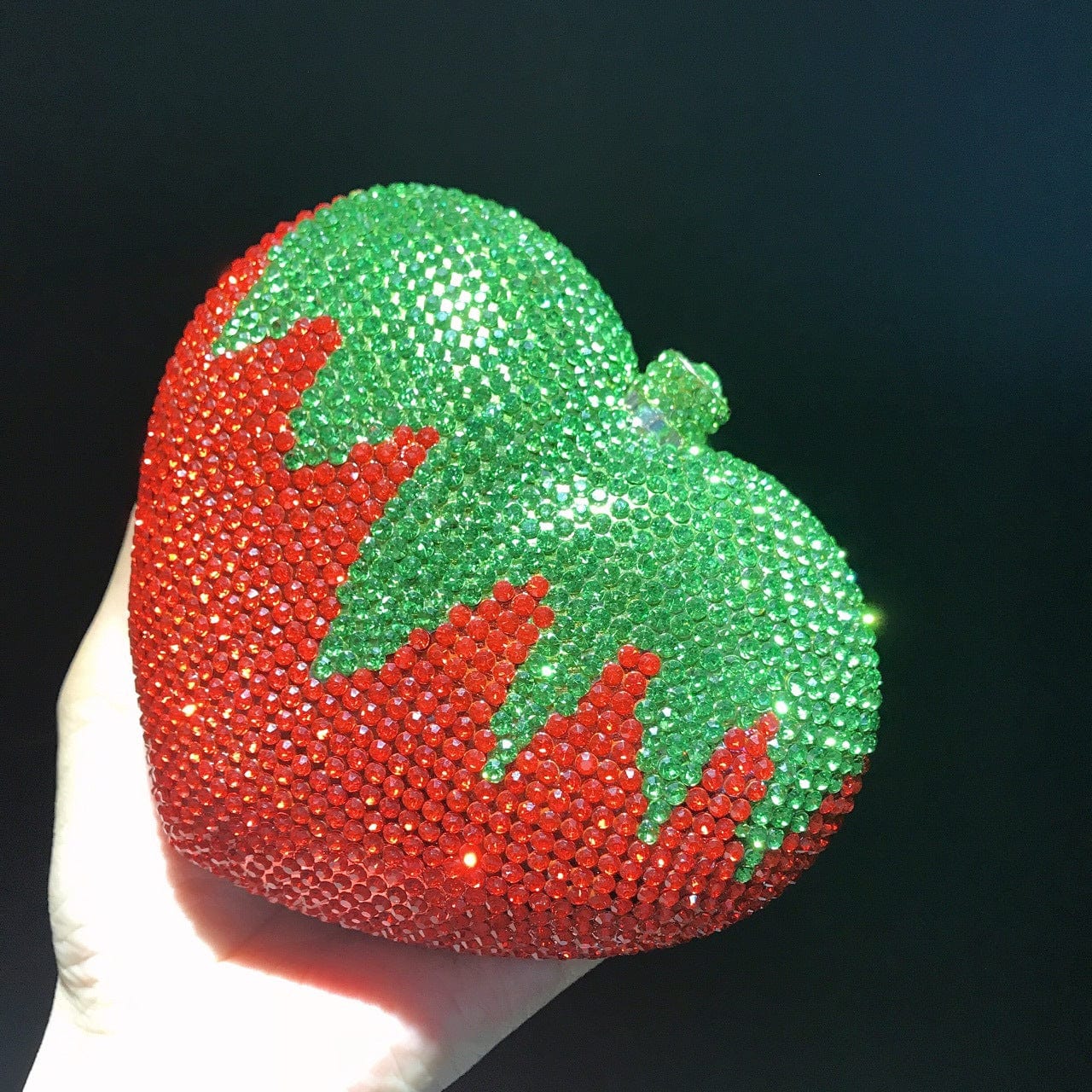 2022 New Arrival Strawberry Fuit Shaped Clutch Bag Jeweled Clutch Purse Crystal Prom Handbag Evening Purse For Wedding