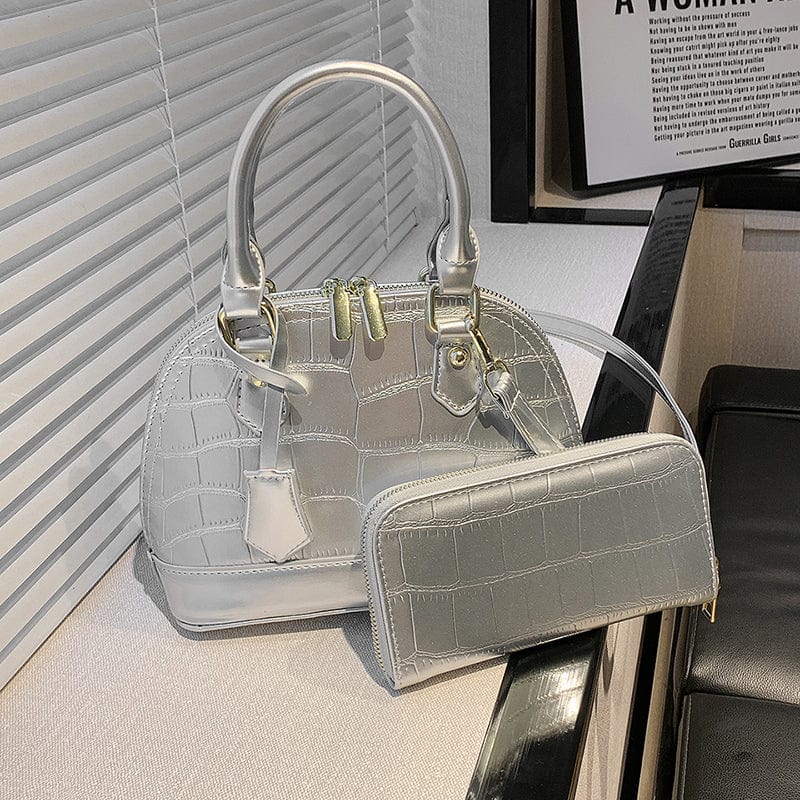 2022 New Fashion Crocodile Pattern Shoulder Bag Luxury Shell Shape Handbag Sets 2 Pieces Lady Hand Bags