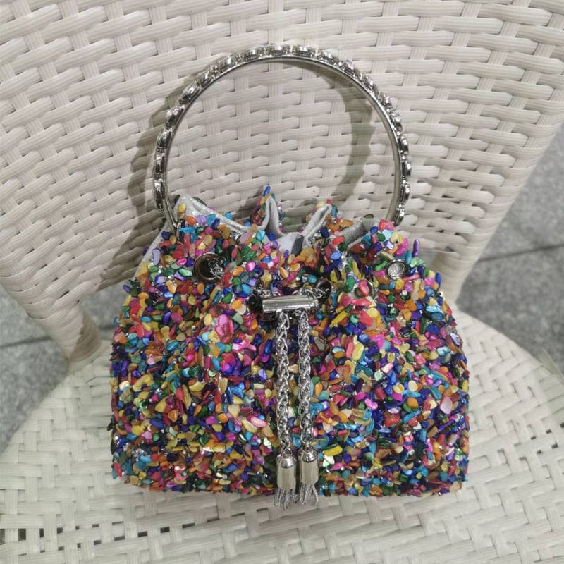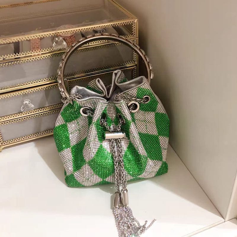 2022 Shenglu New Fashion Women Rhinestone Bucket Tassel Handbag Purse Tote Diamond Wedding Evening Shoulder Crossbody Bags