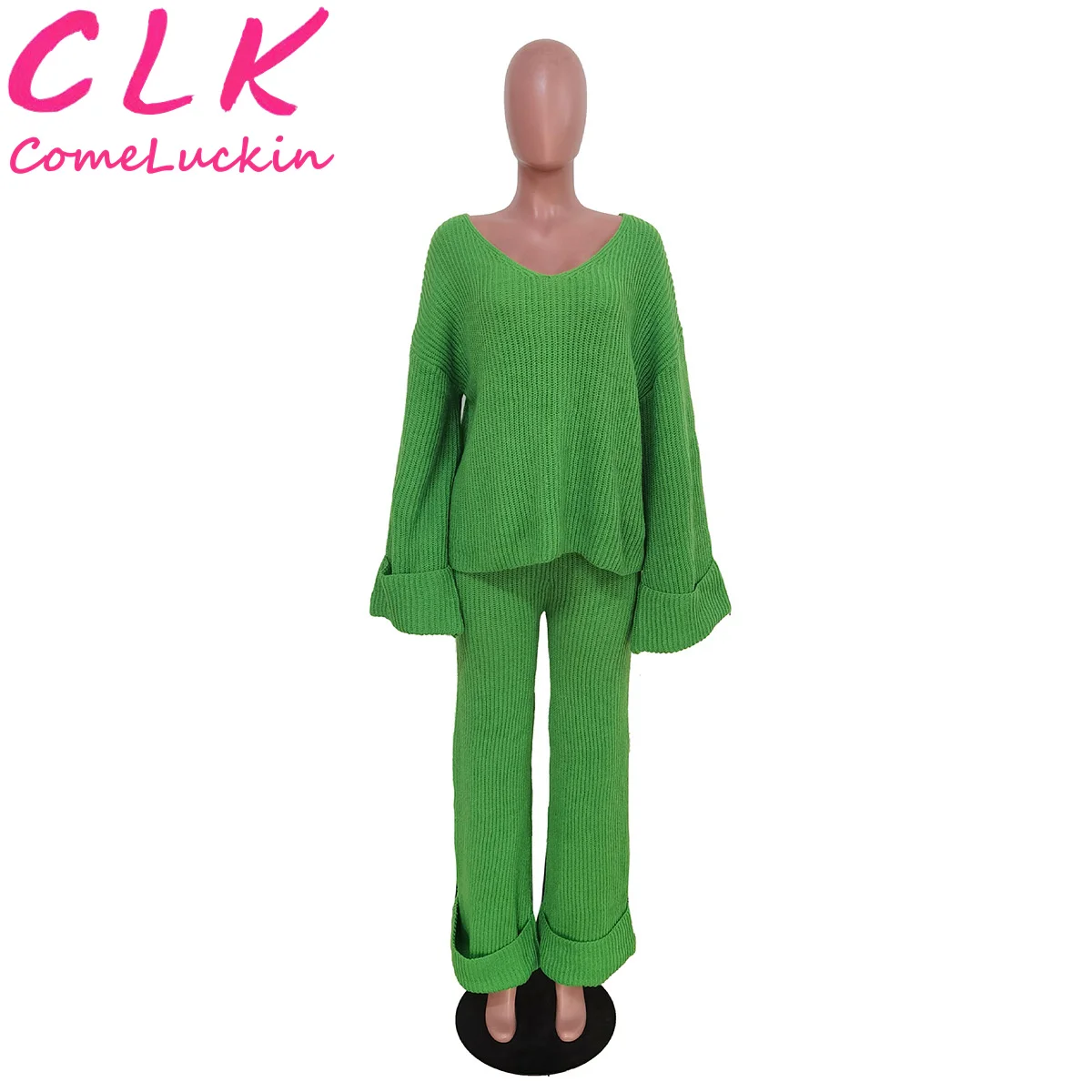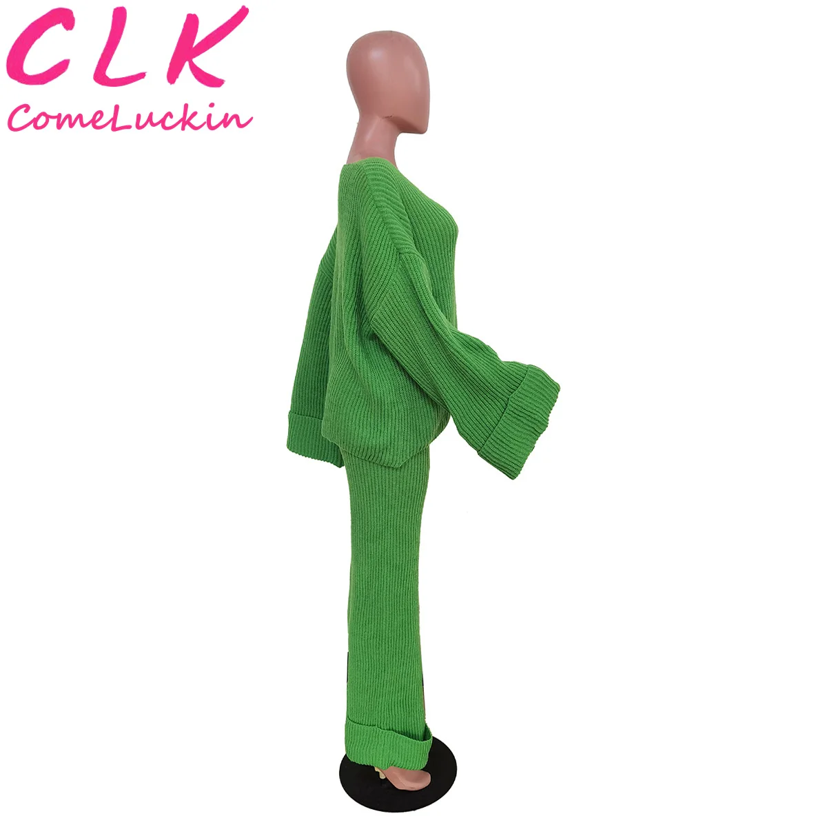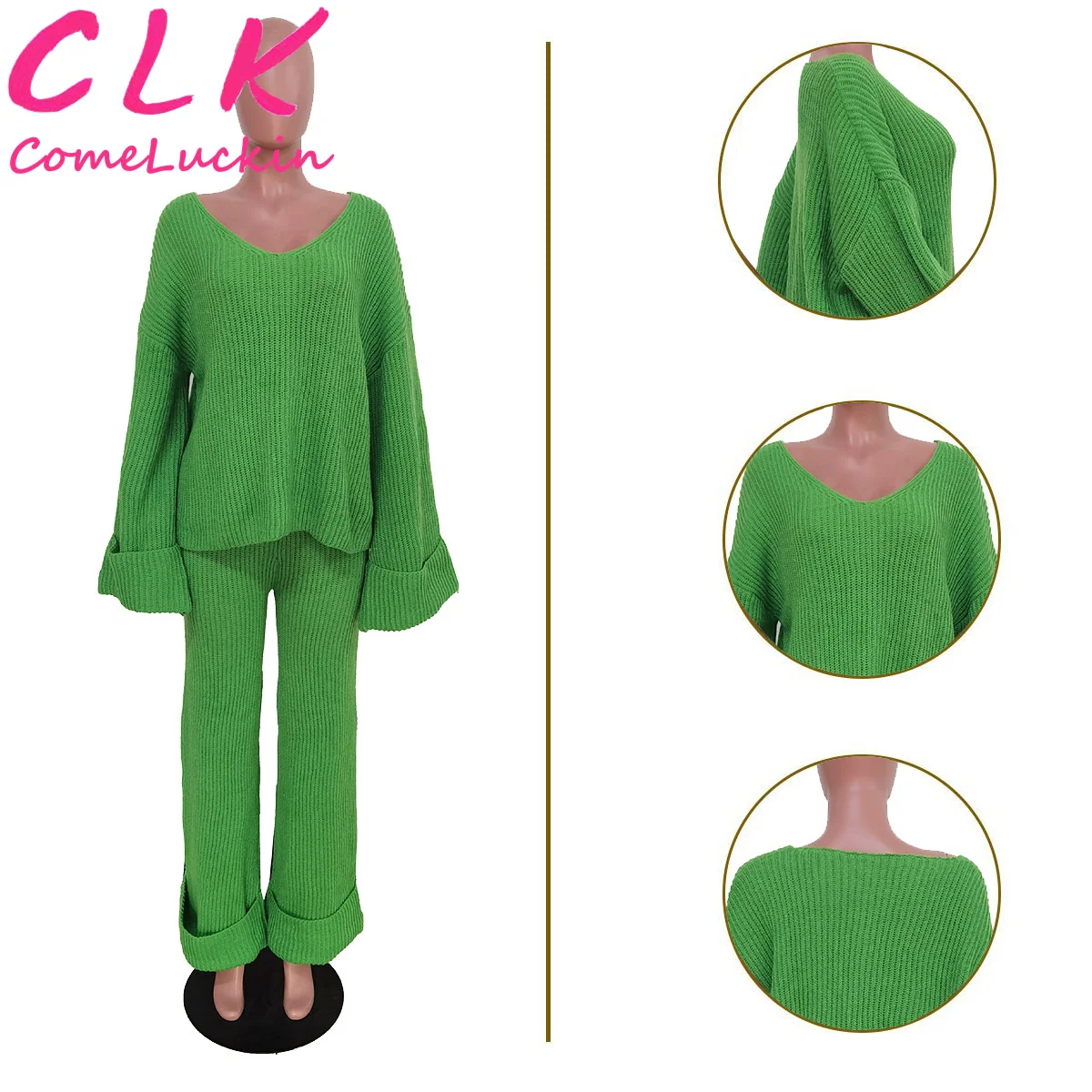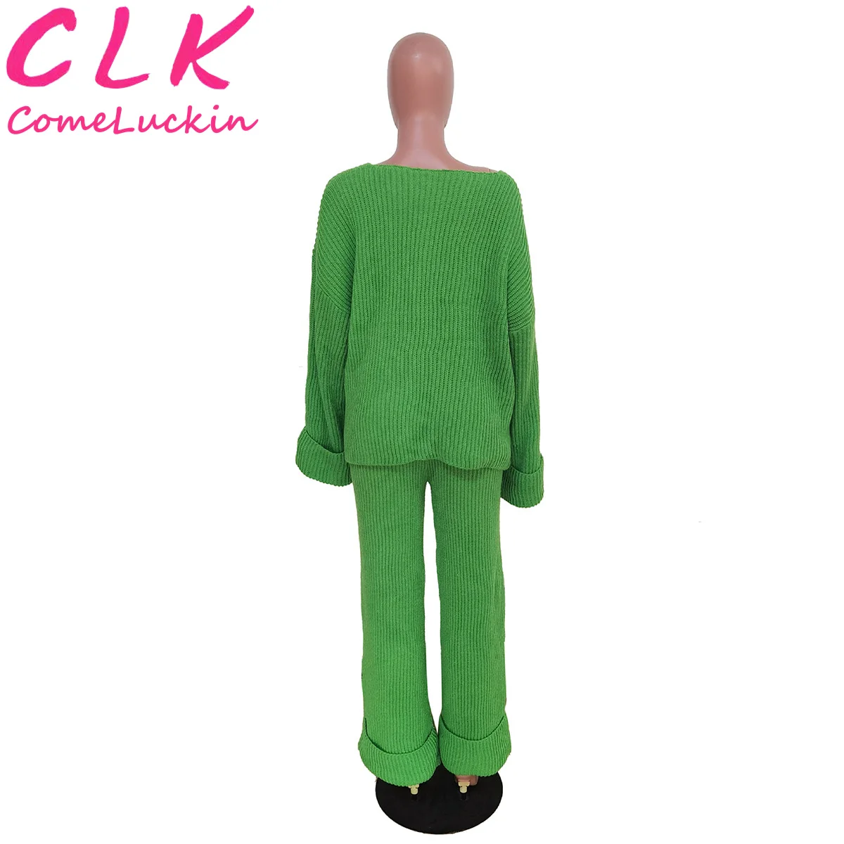 2023 Custom Logo Female Fall Knit Sweater Suit Women 2 Pieces Clothing Sets Casual Round Collar Loose Pullover Sets For Women
