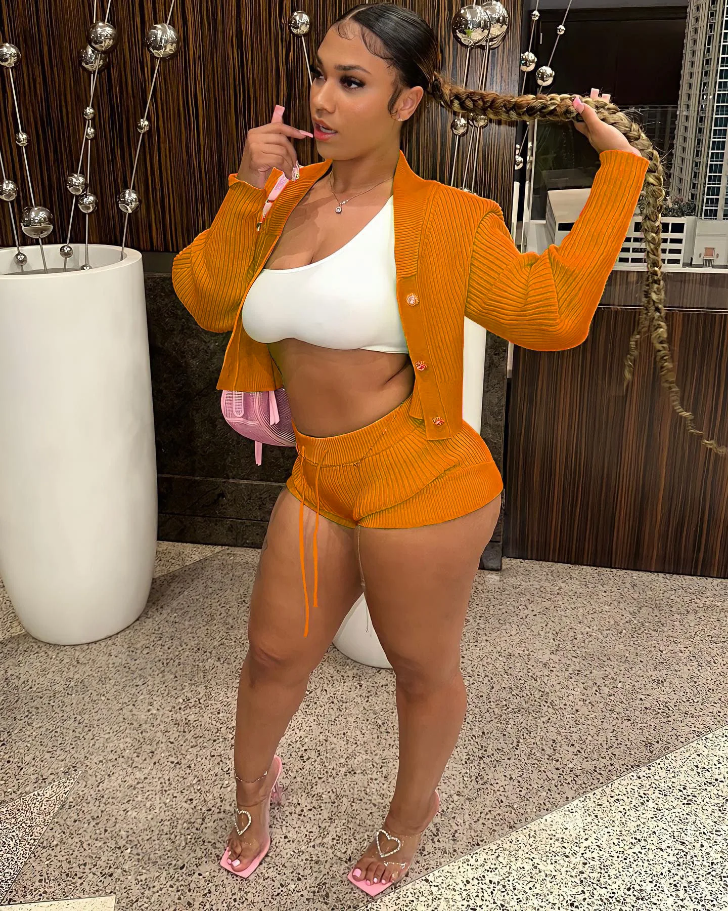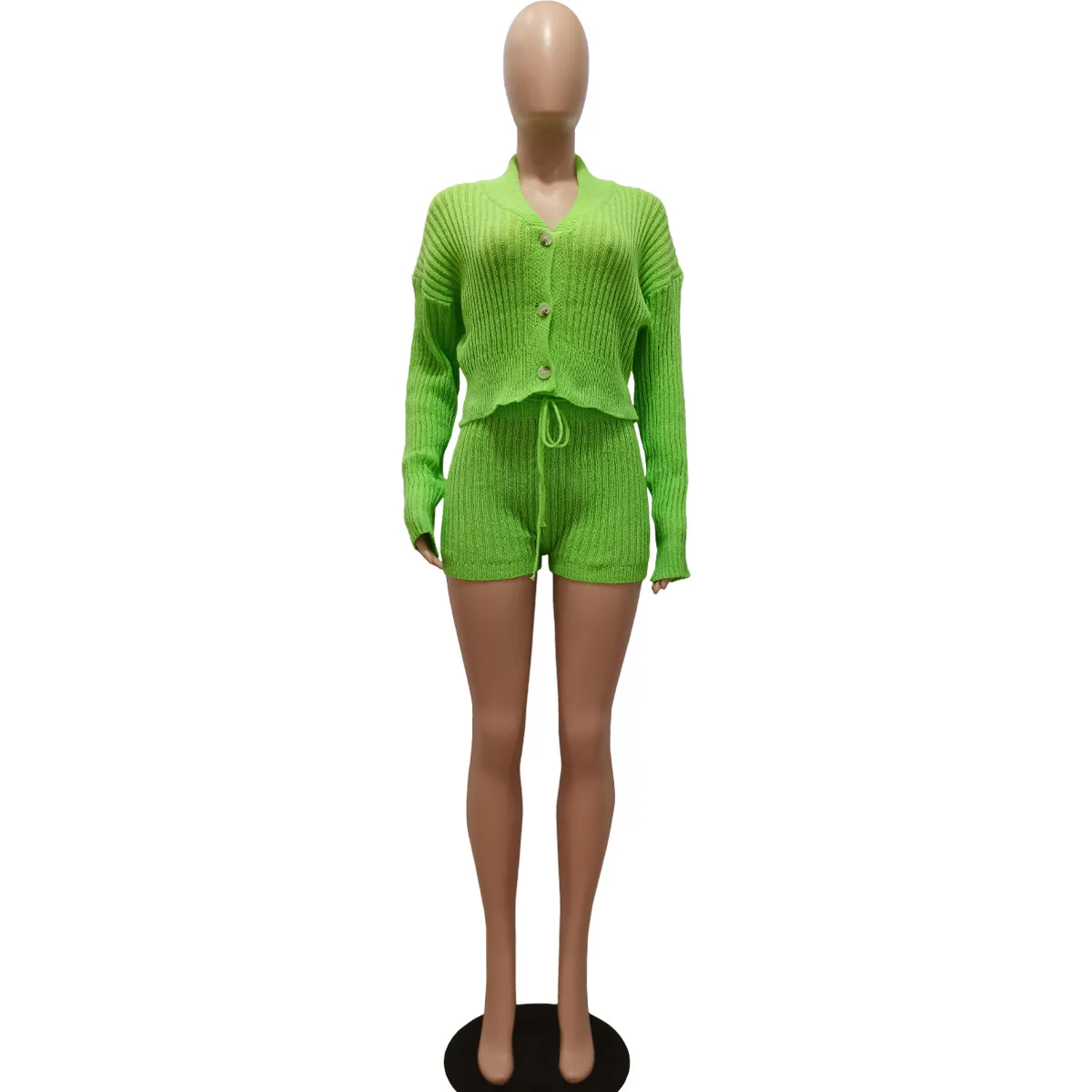 2023 Fall Clothing Knitted 2 Piece Set Women Cardigan and Short Pants Two Piece Women Fitness Outfits