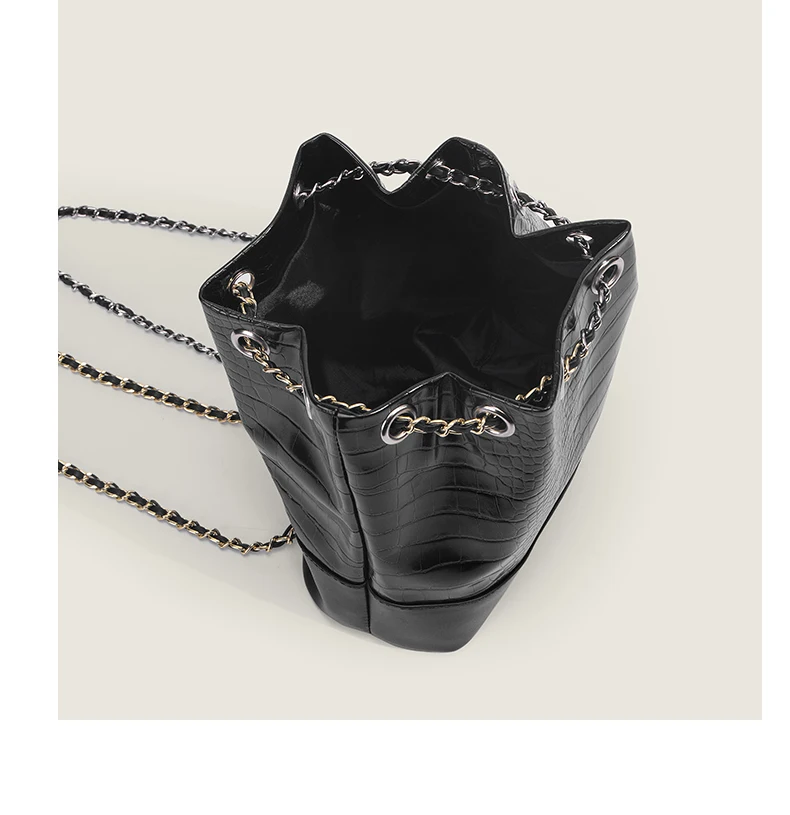 2023 New Crocodile Women Bucket Handbag Small Shoulder Bag Chain Messenger Multifunction