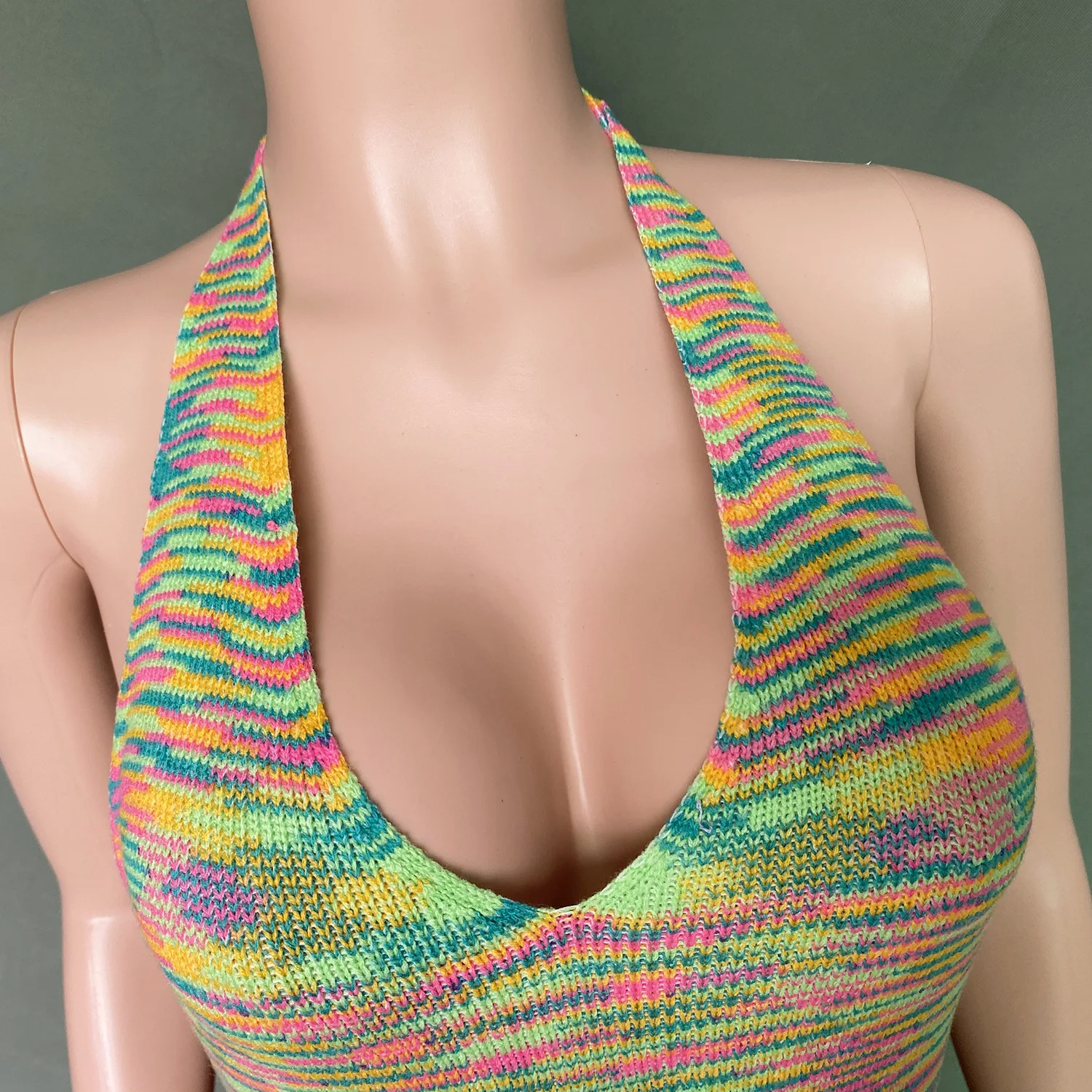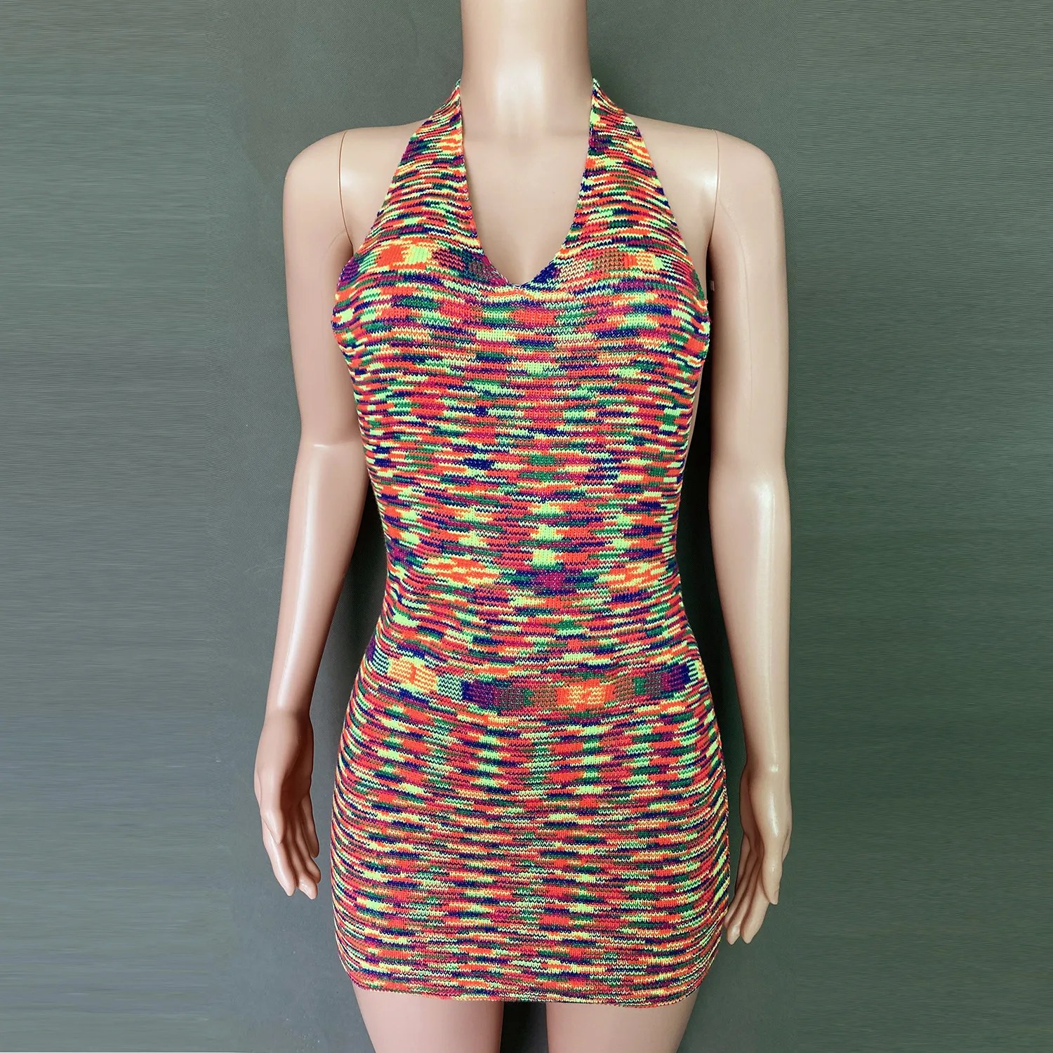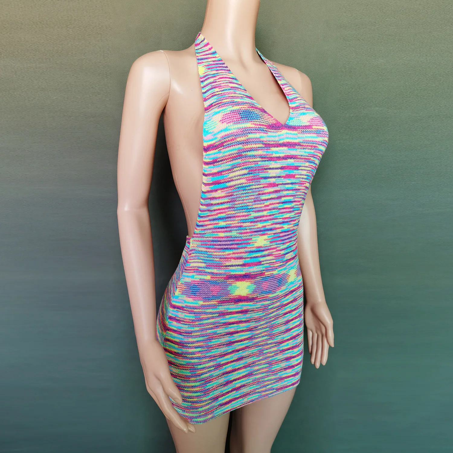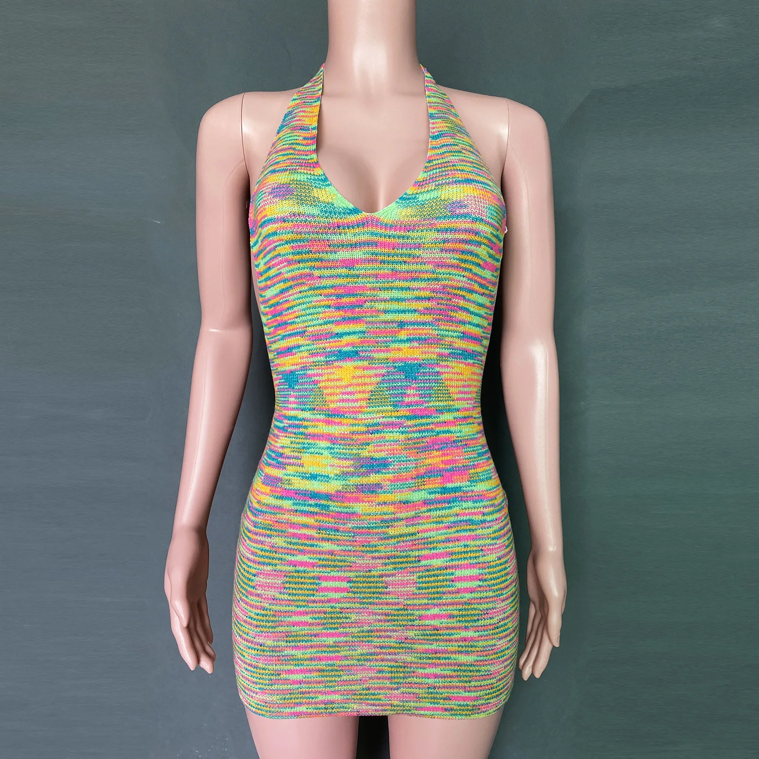 2023 Women's Bodycon dress holiday backless deep V sexy bag buttock colorful sweater knitted dress sexy dress