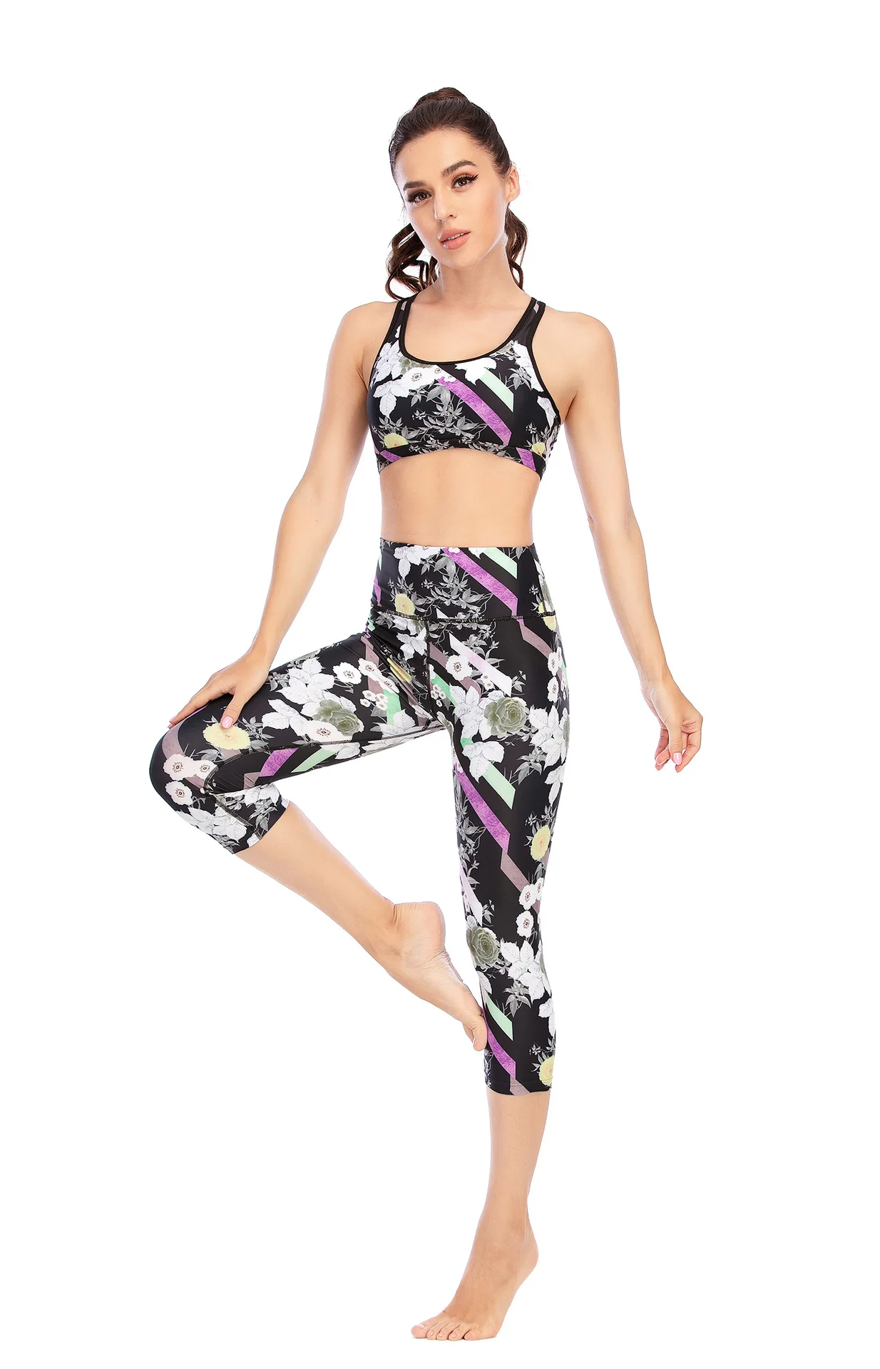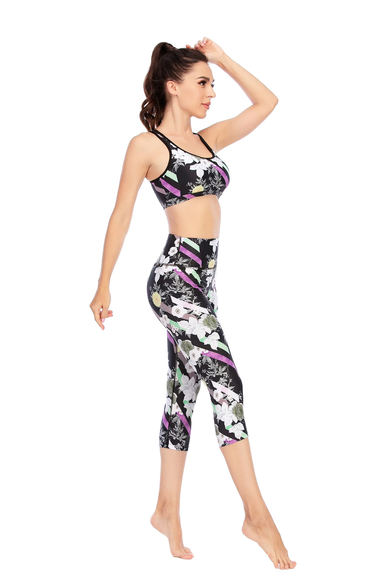 2024 Athletic Wear Sport Girls Seamless Fitness Sport Wear High Elastic Women Yoga set Backless Bra Printing Leggings Yoga suit