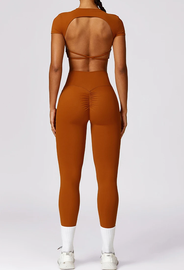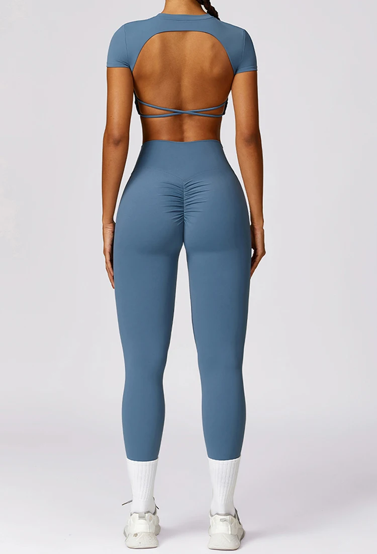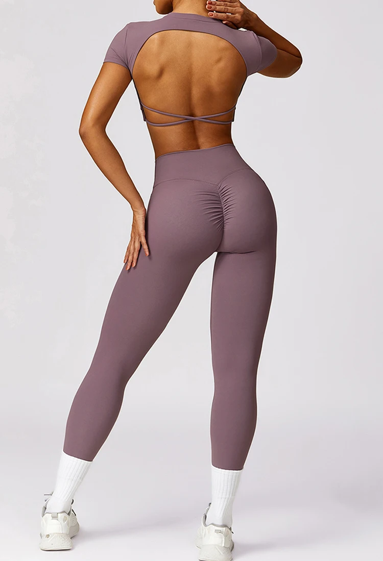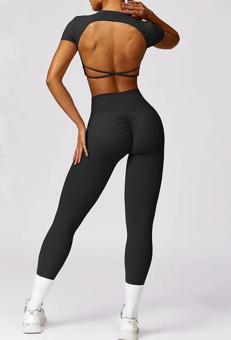 2024 Custom Women Sportswear Scrunch butt Backless High Waist Removable pads 2 Pieces Sports Workout Suit Yoga Gym Leggings Set