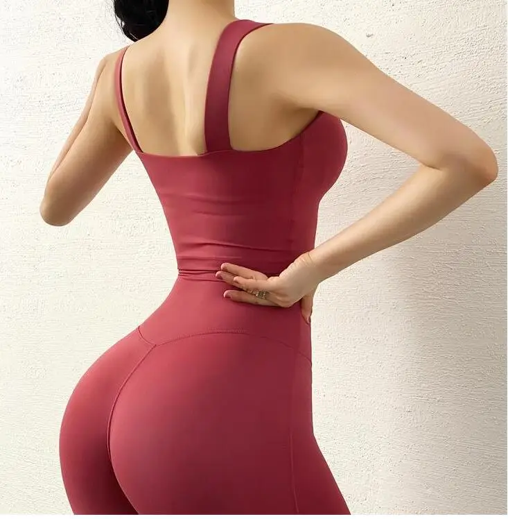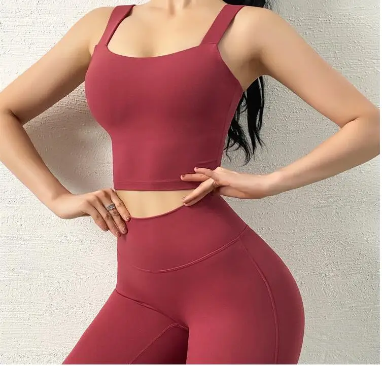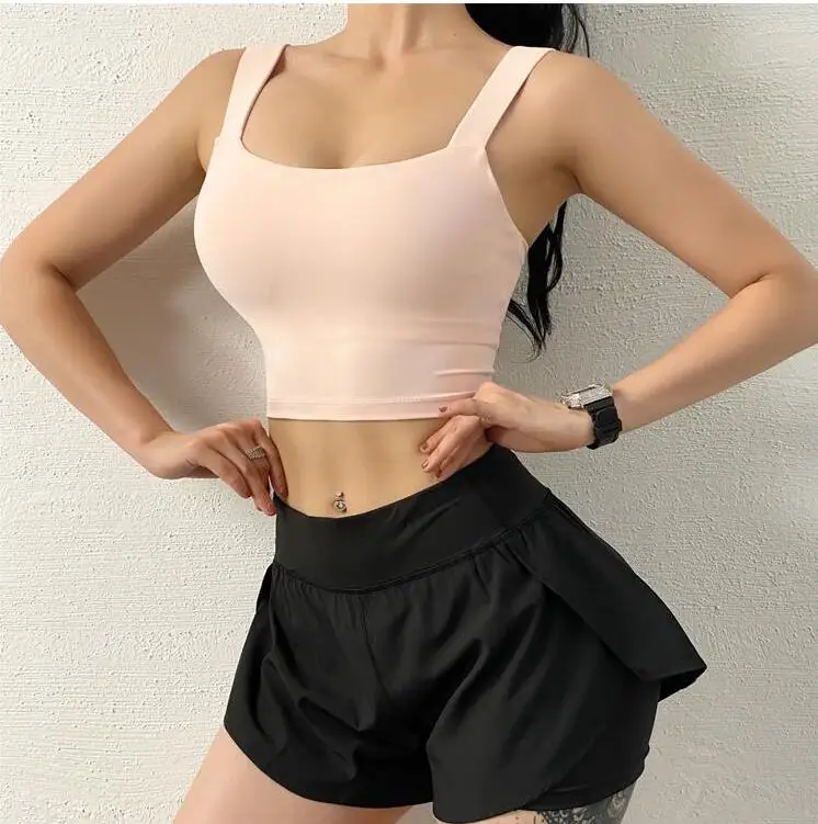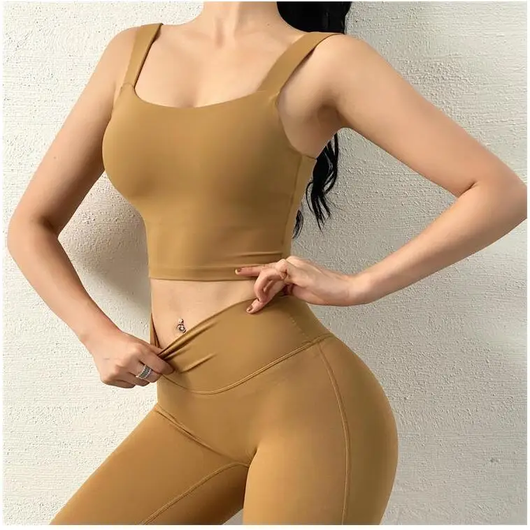 2024 Double sided matte nude feel gathering shock-absorbing sports vest women's suspender deep U-shaped back yoga vest style bra