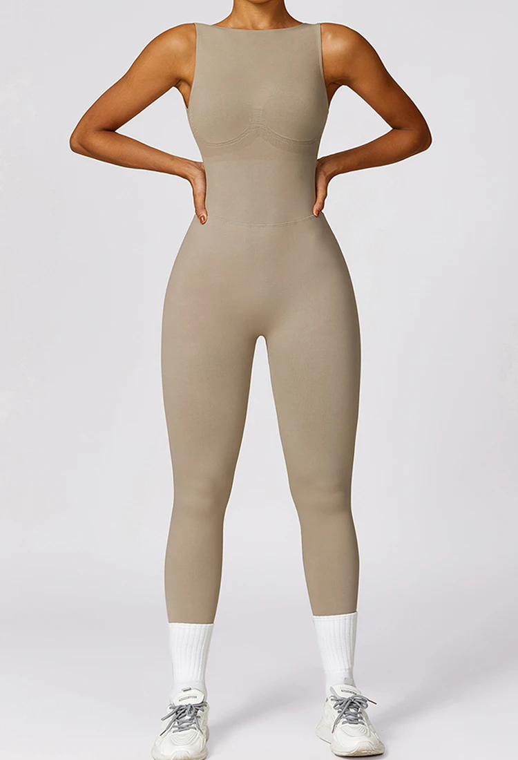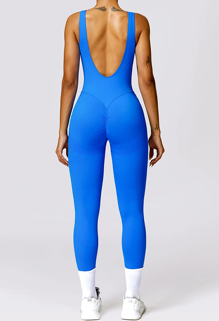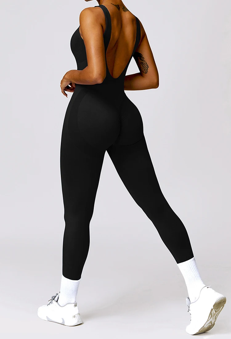 2024 High Quality Wholesale Ladies Scrunch butt Backless Sleeveless One Piece Jumpsuits Workout Jumpsuit For Women