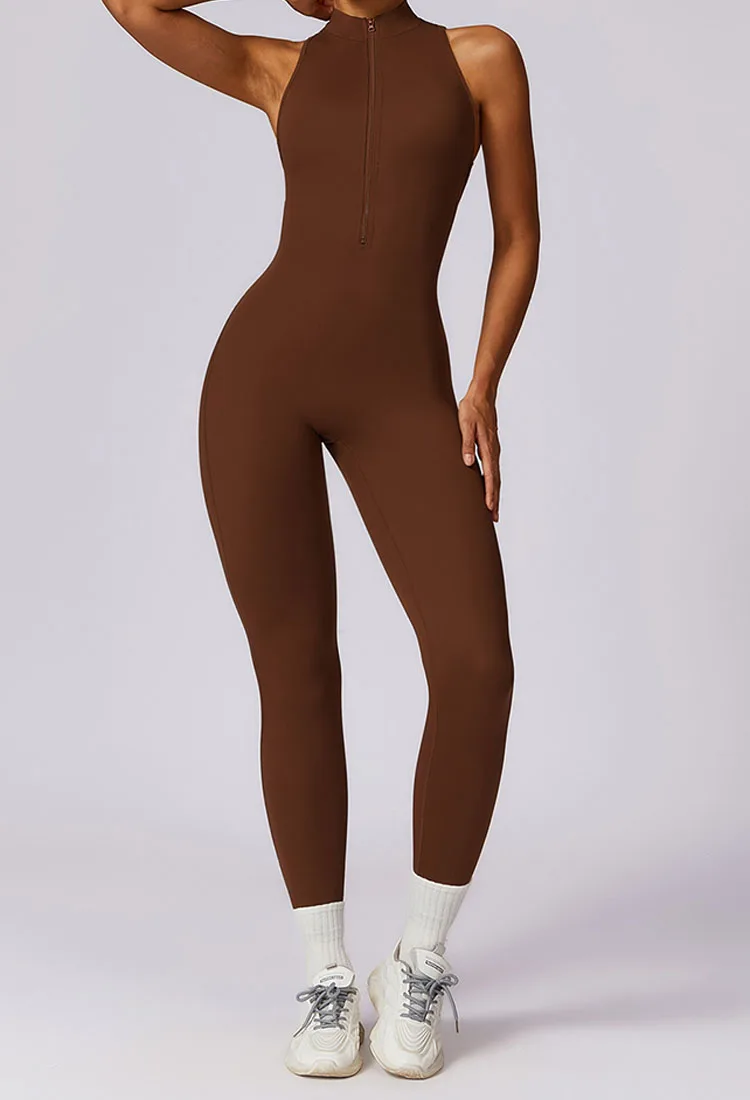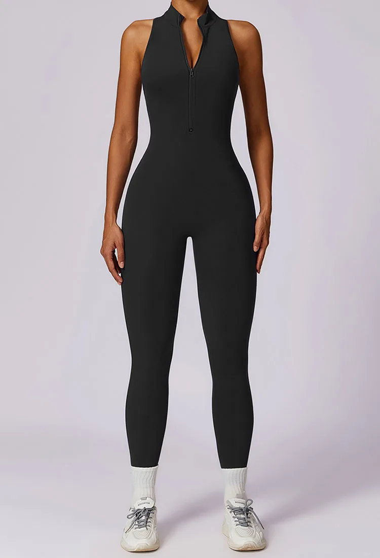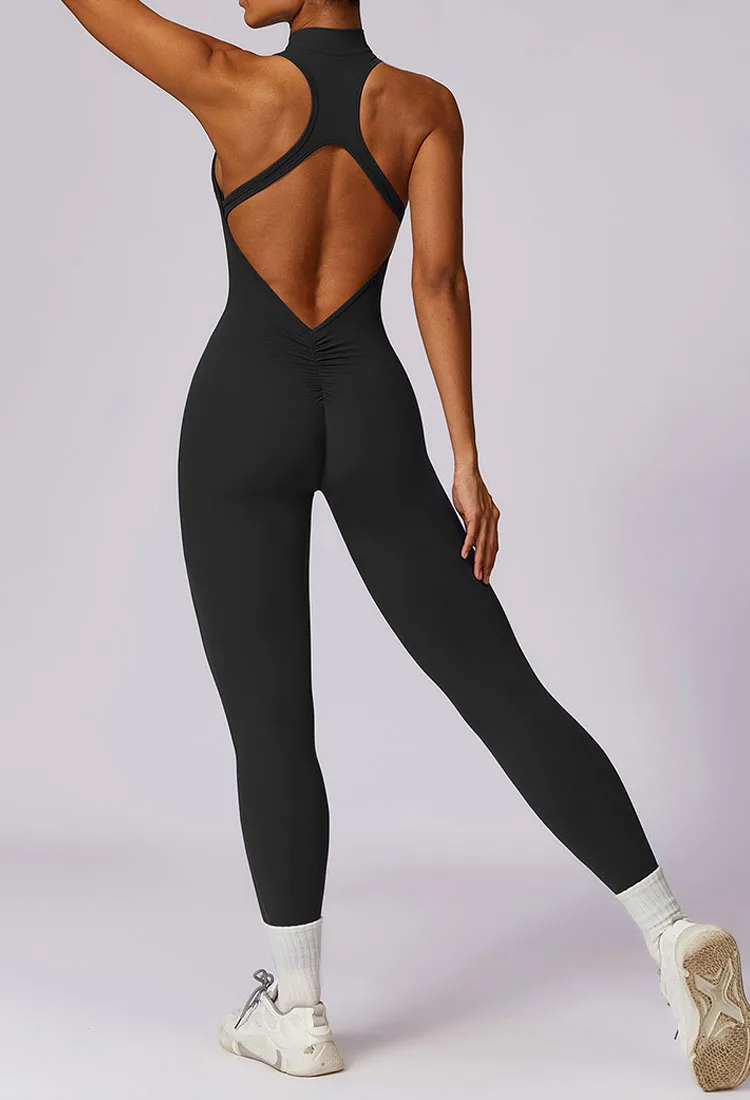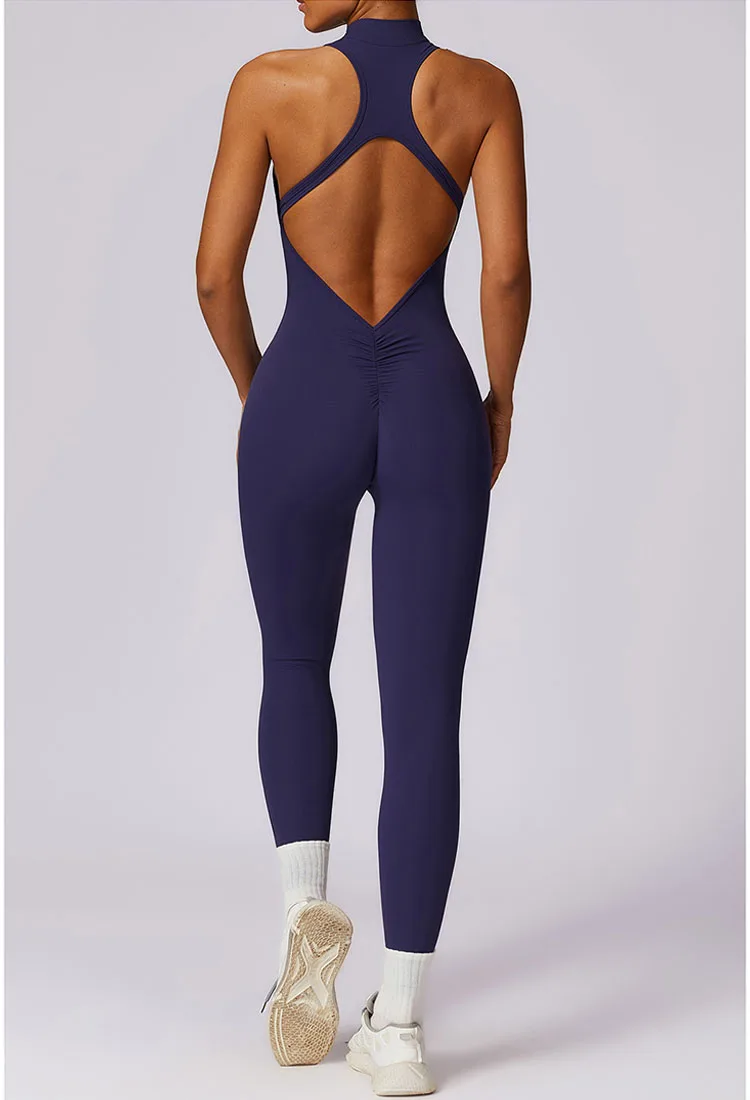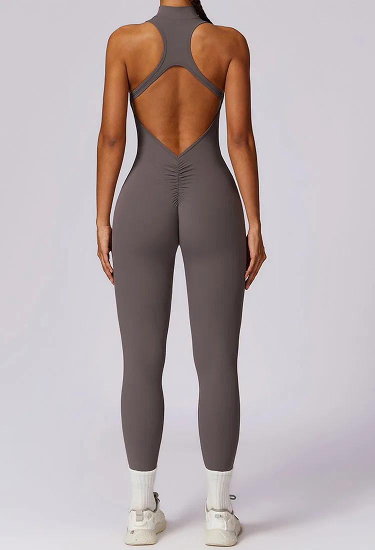 2024 Hot selling Stand Collar Zip Hollow Out Back Workout Bodysuit Rompers One Piece Gym Fitness Jumpsuits Women Yoga Jumpsuit