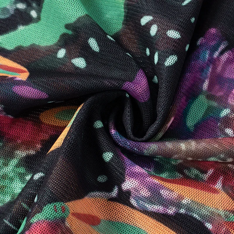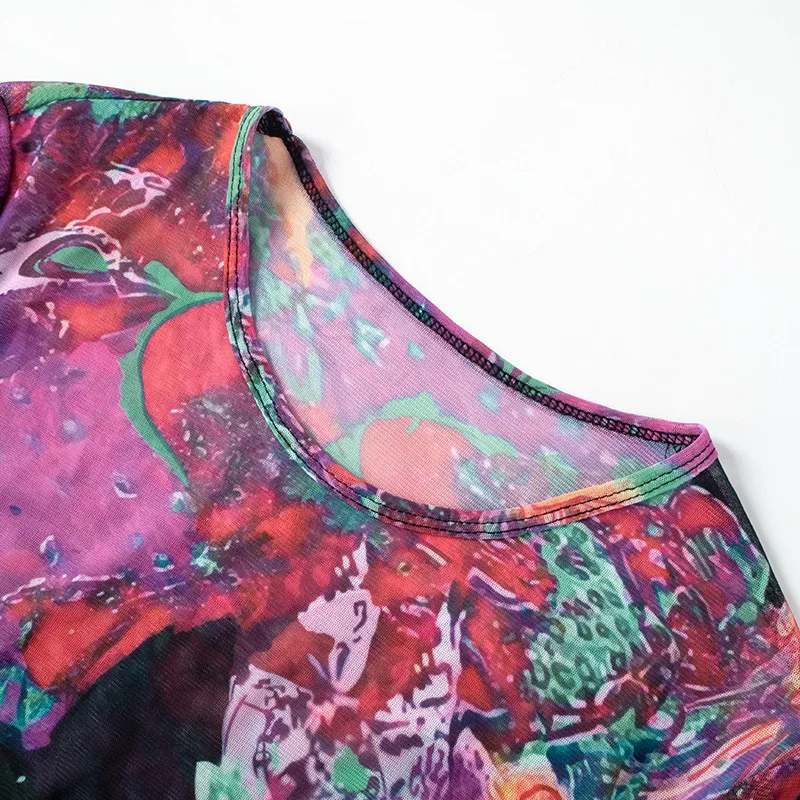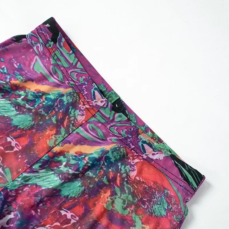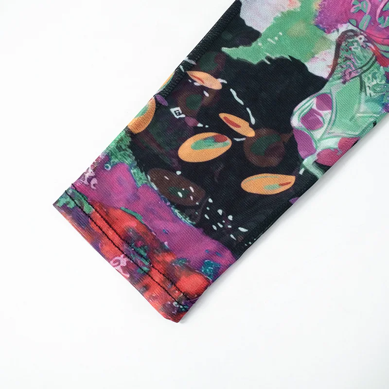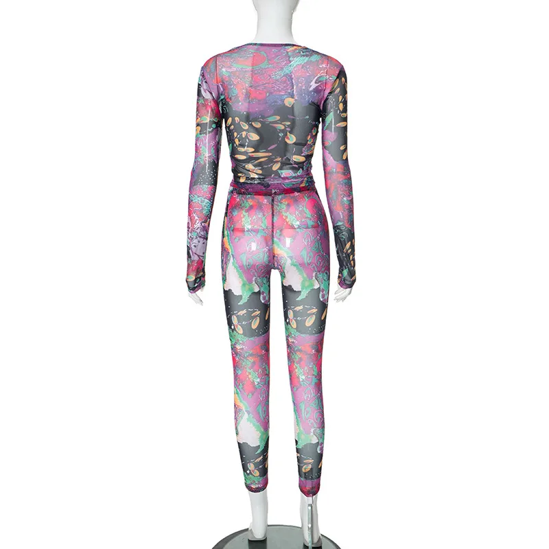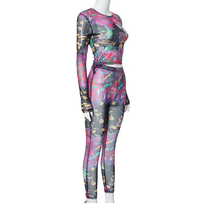 2024 new arrivals usa clothing summer digital print mesh long sleeve two piece pants set