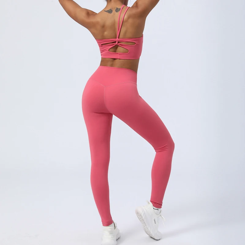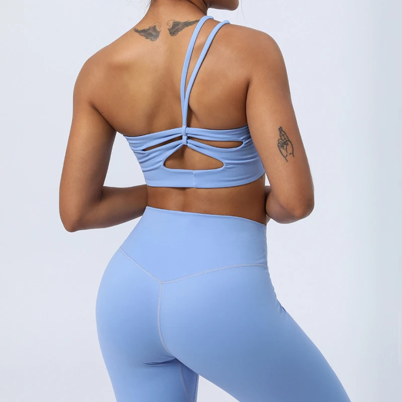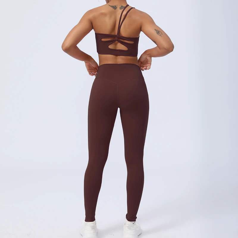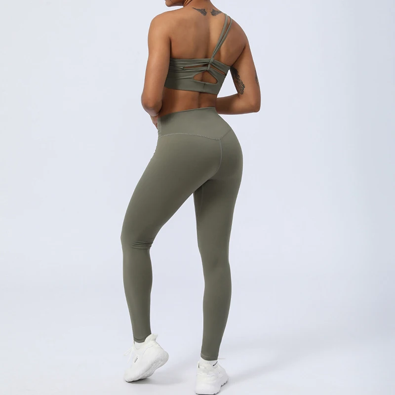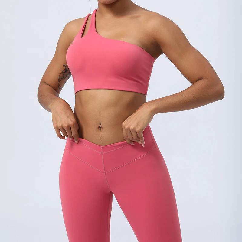 2024 New Women Gym Yoga Set Sexy Breathable Single One Shoulder Yoga Bra And Elastic High Waist V Cut Leggings Gym Fitness Sets