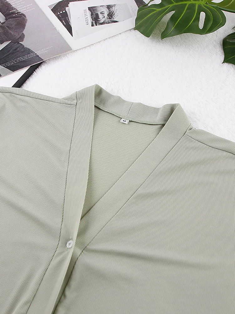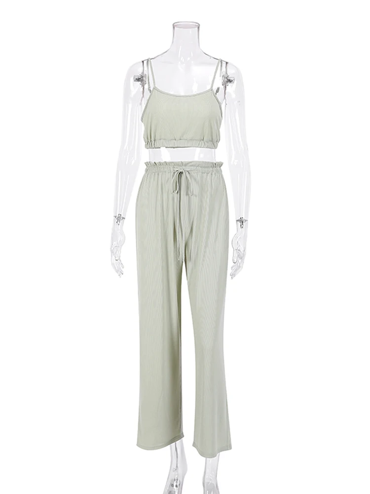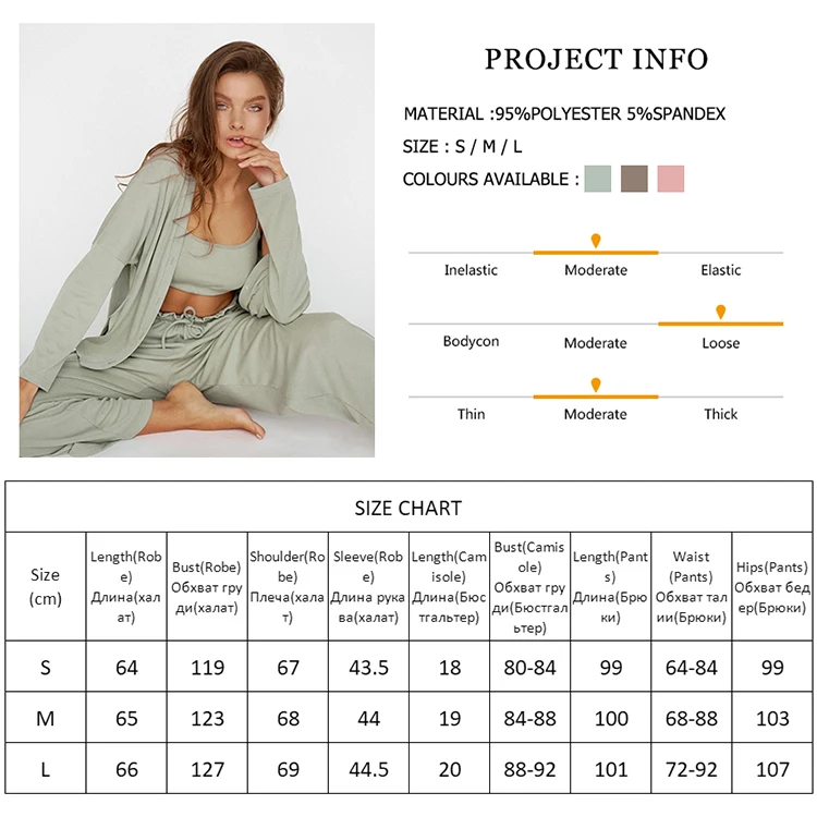 2024 Soft Touch Ribbed Drop Sleeves Sleepwear Pajama Set Winter Sleepwear Outfits Pants 3 Pieces Women's Clothing Sets Loose