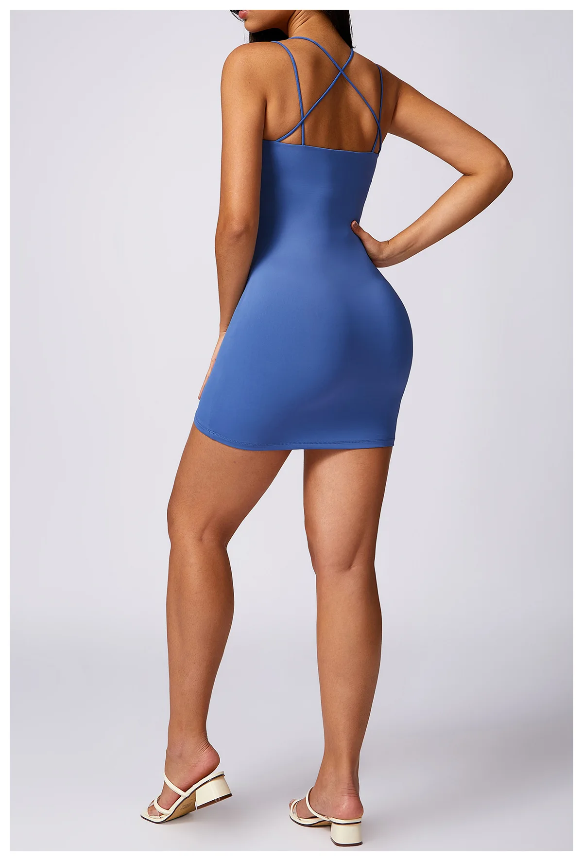 2024 Sports New Arrival Sexy Yoga Dress Women's Sling Cross Shoulder Strap High Elastic Tight Running Tennis Short Romper Dress