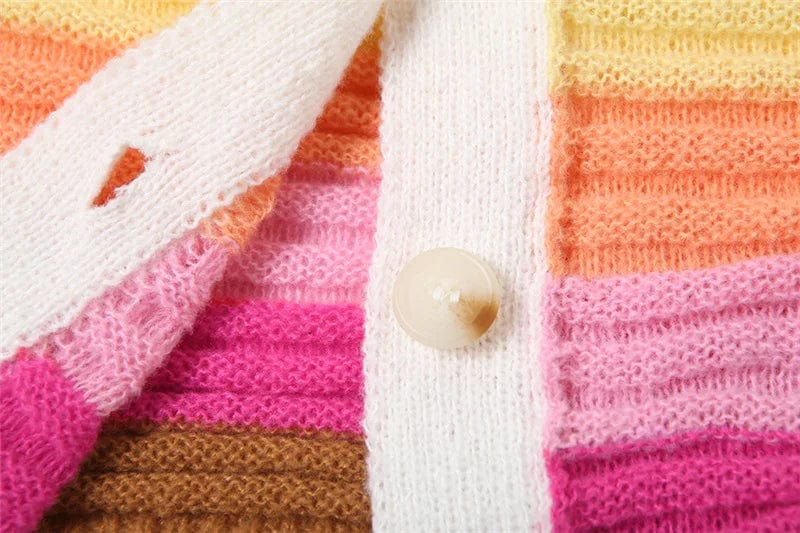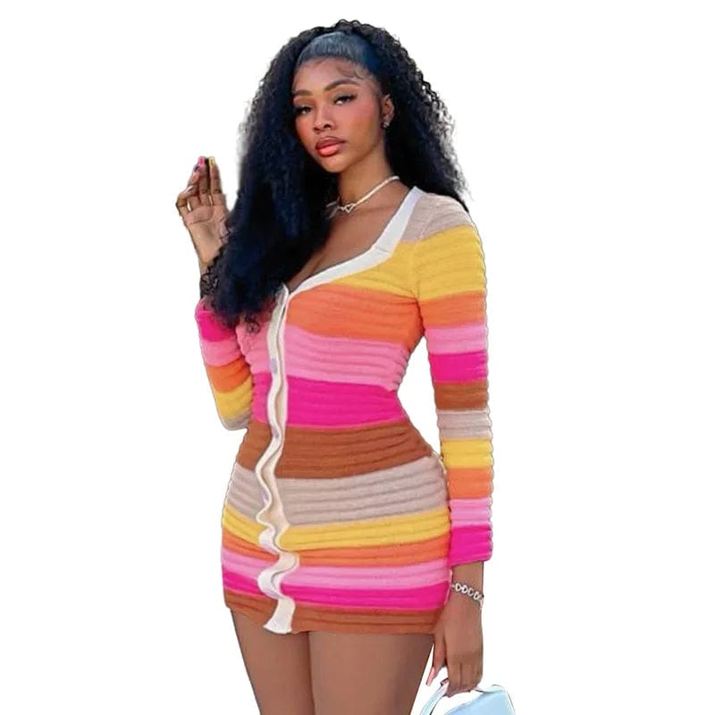 2024 Spring Dress Women Clothing Sexy Club Knitted Striped Party Dress with Button for Ladies Dress