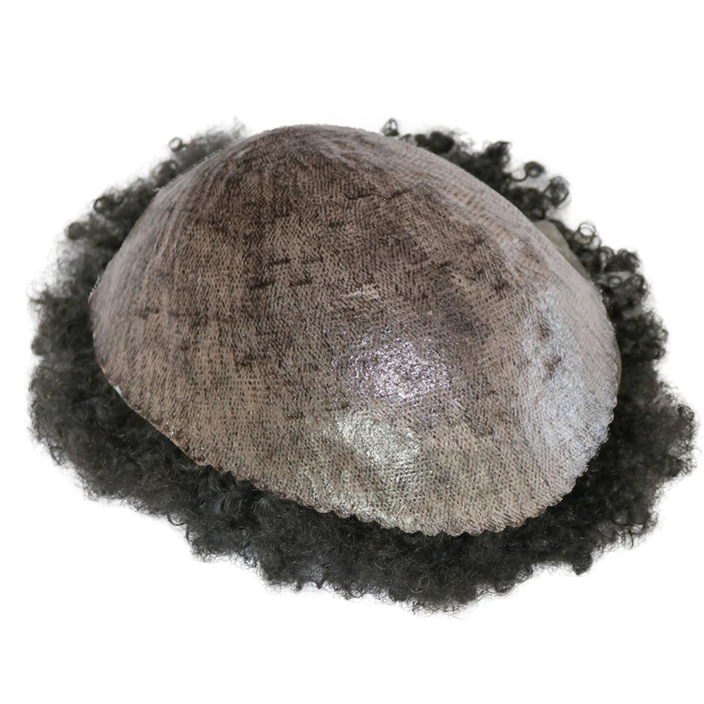 20MM Curly Men' Wigs Capillary Prosthesis Human Hair Thin Skin Toupee For Men Wave New Hair System Replacement #1B Black 8x10''