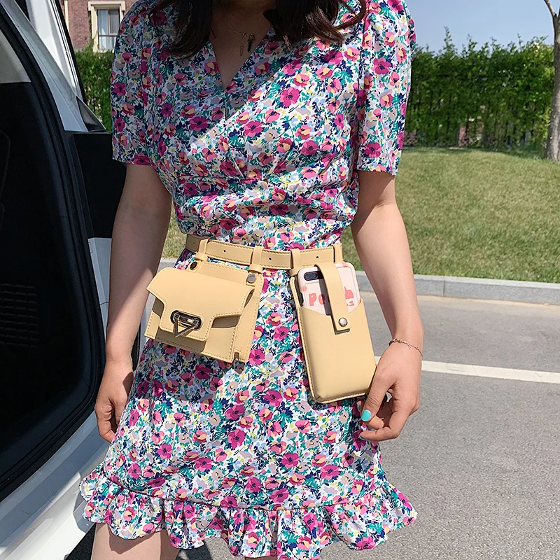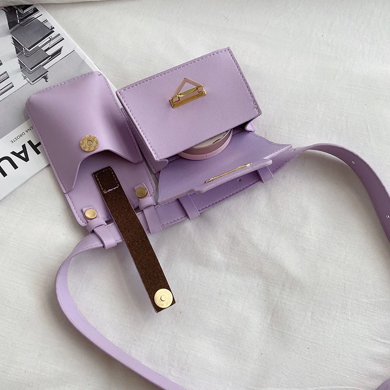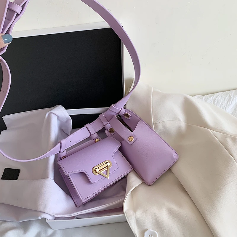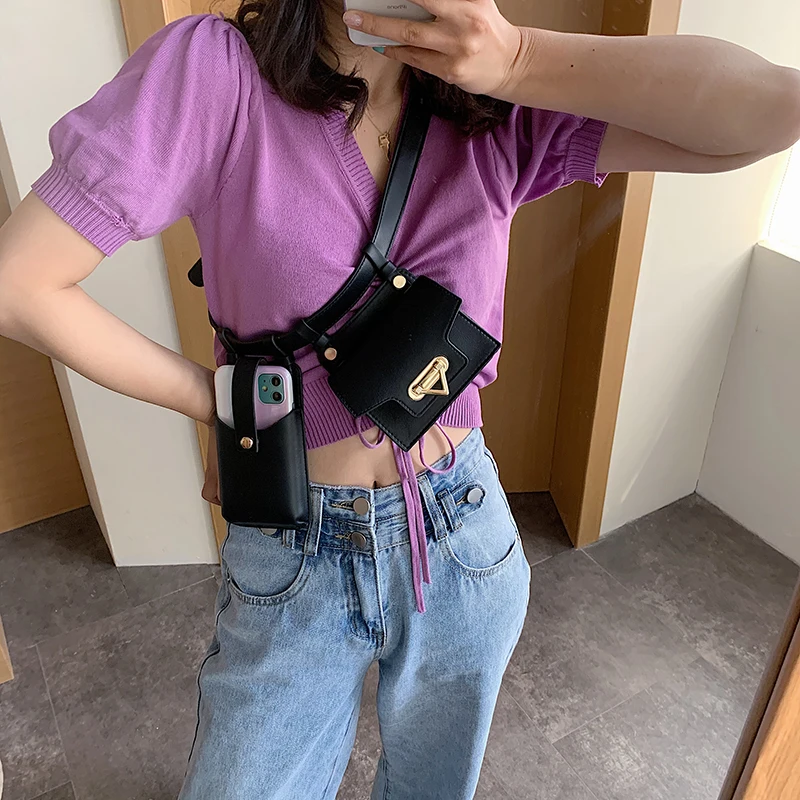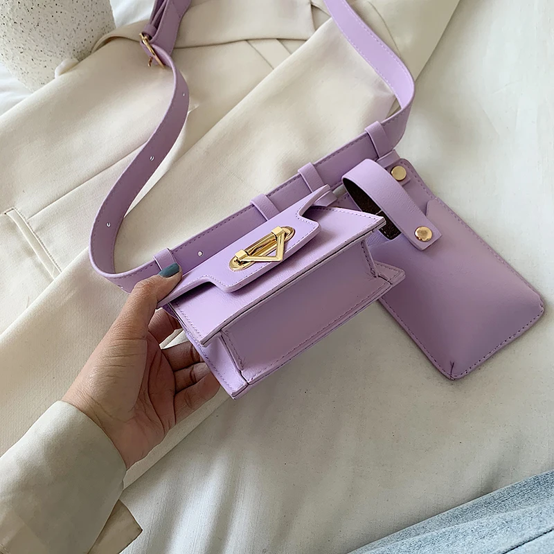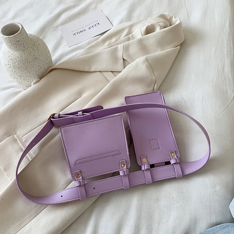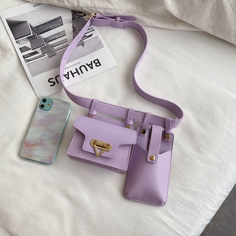 2PCS Set High Quality PU Leather Fanny Pack Shoulder Cross Body Chest Bag Hip Woman Waist Bag