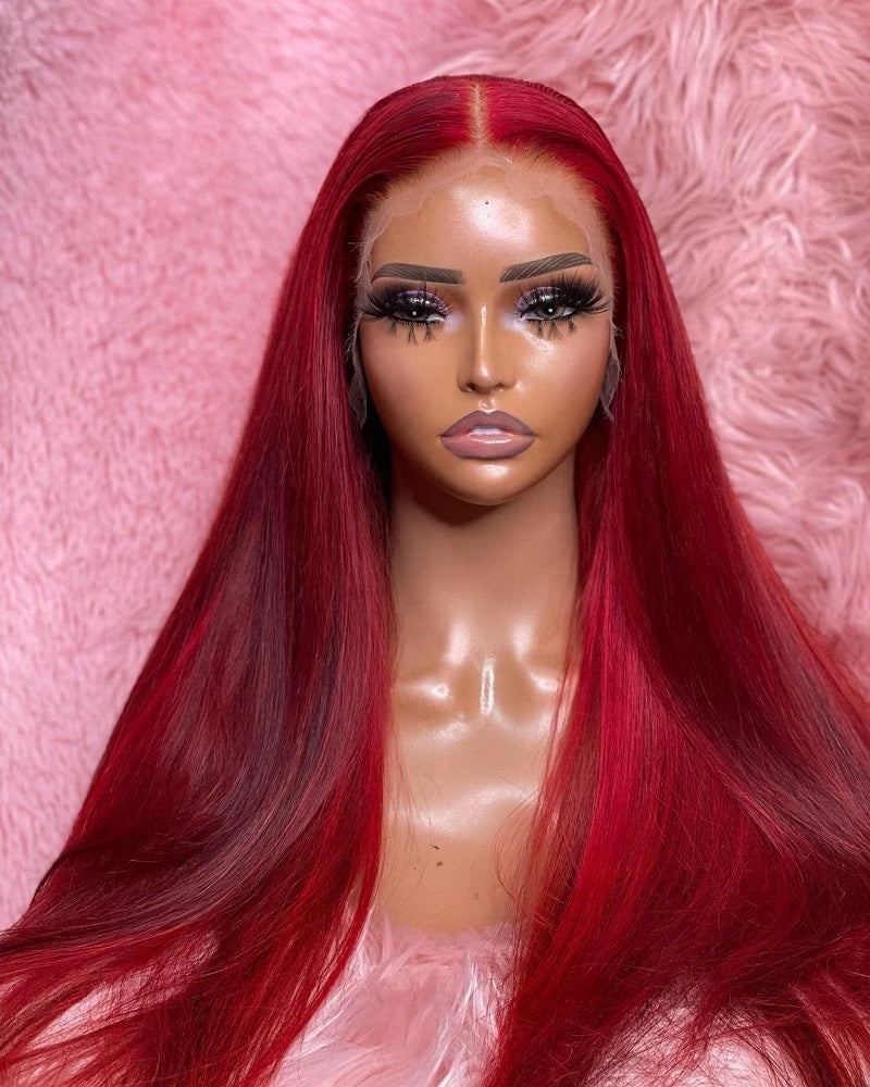 360 lace wog red wigs human hair straight 99j lace front wig for black women