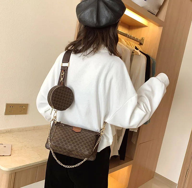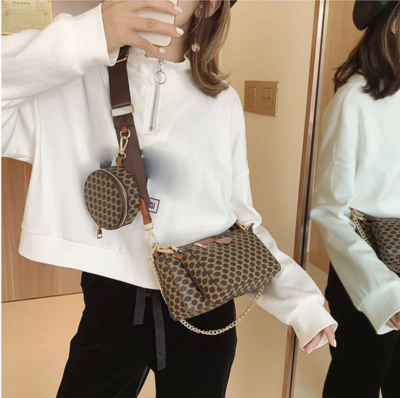 3pcs Sets Ladies Shoulder Bag Vintage Flower Design PU Leather Hand Bags Set Women Handbags
