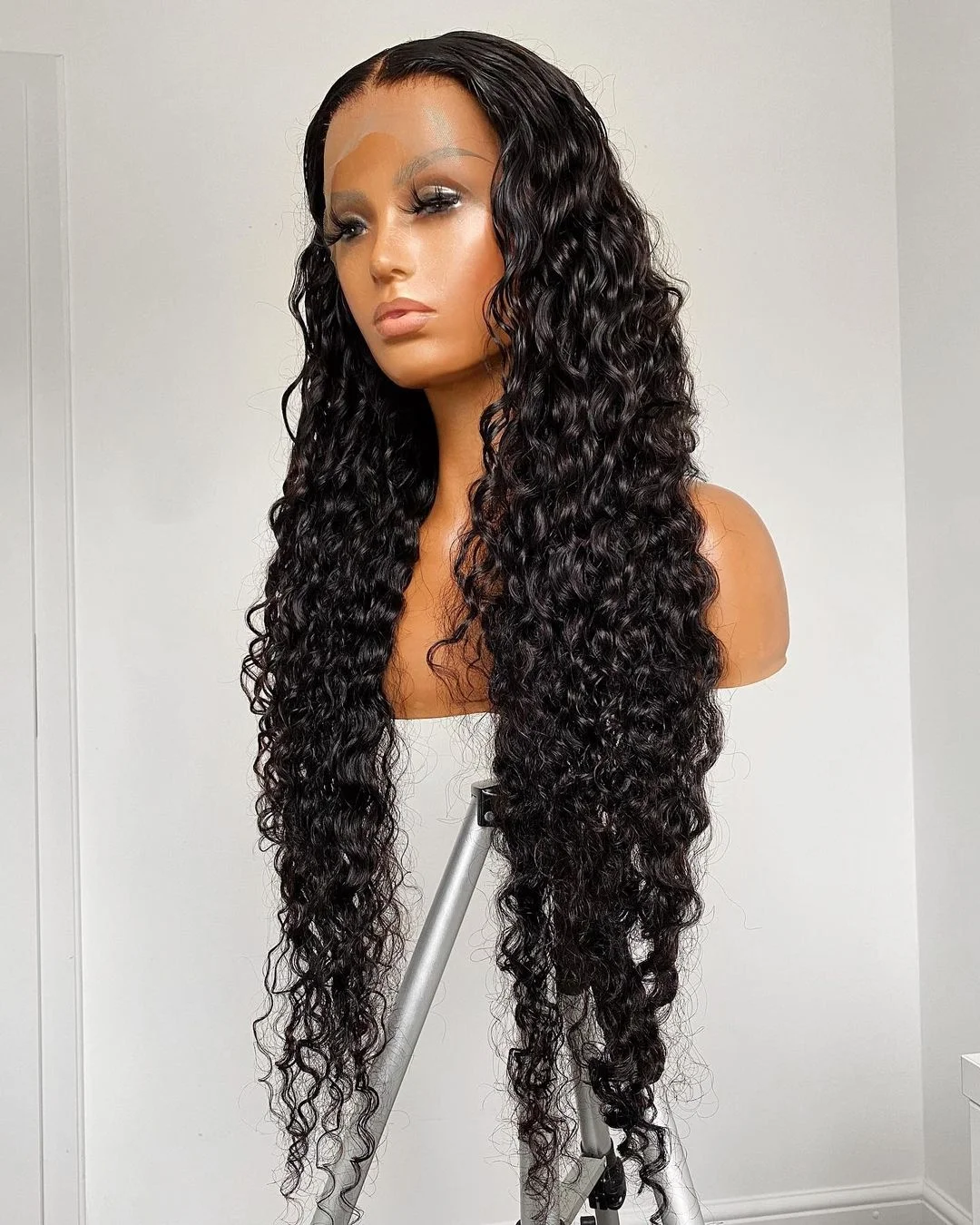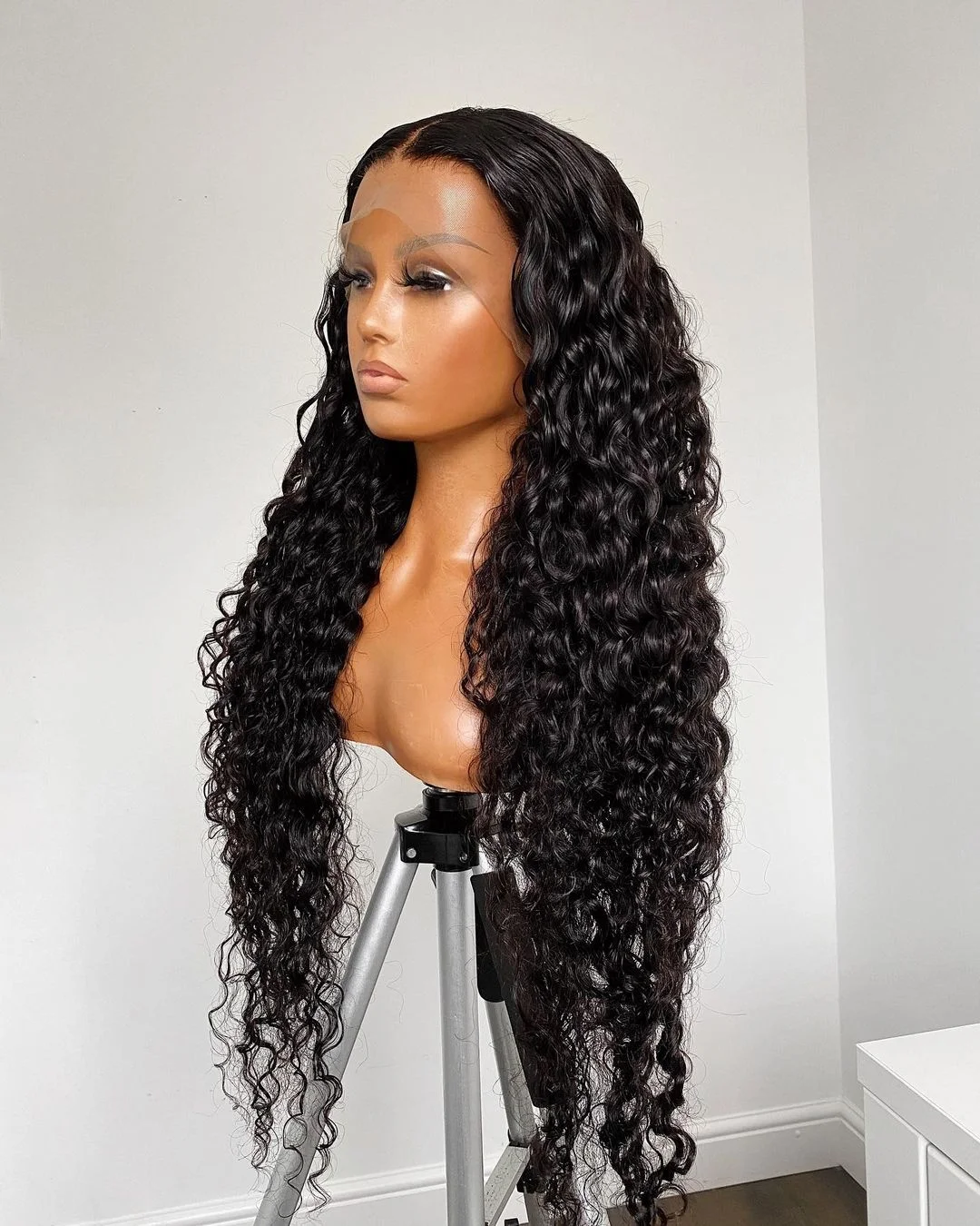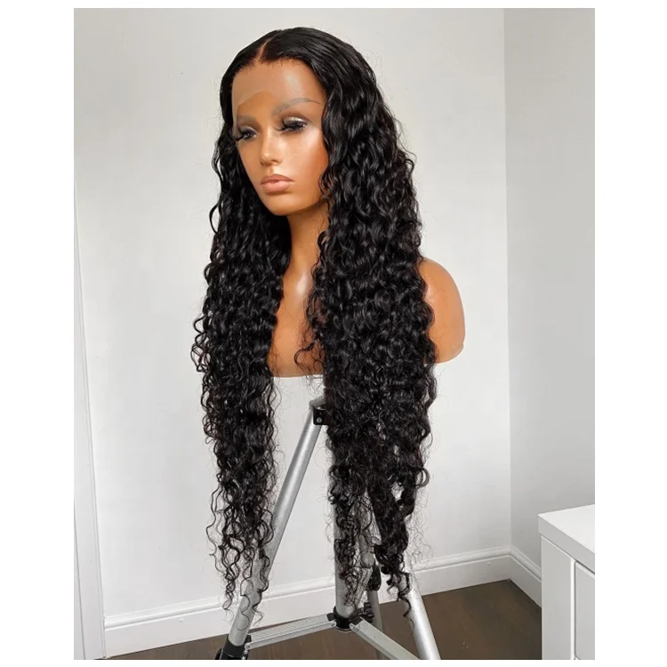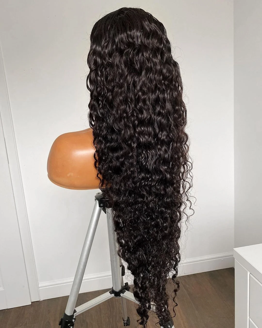 40 Inches Available Small Knots Peruvian Human Hair Lace Front Curly Wig With Transparent Lace