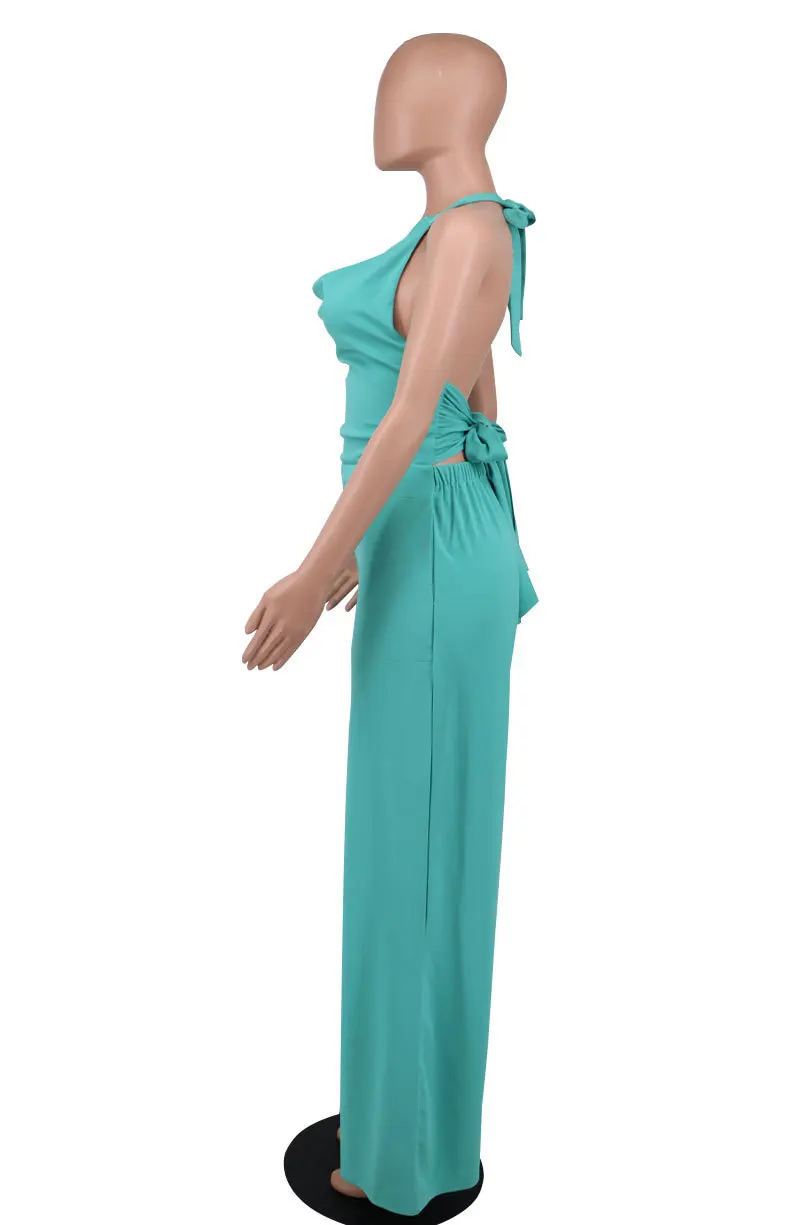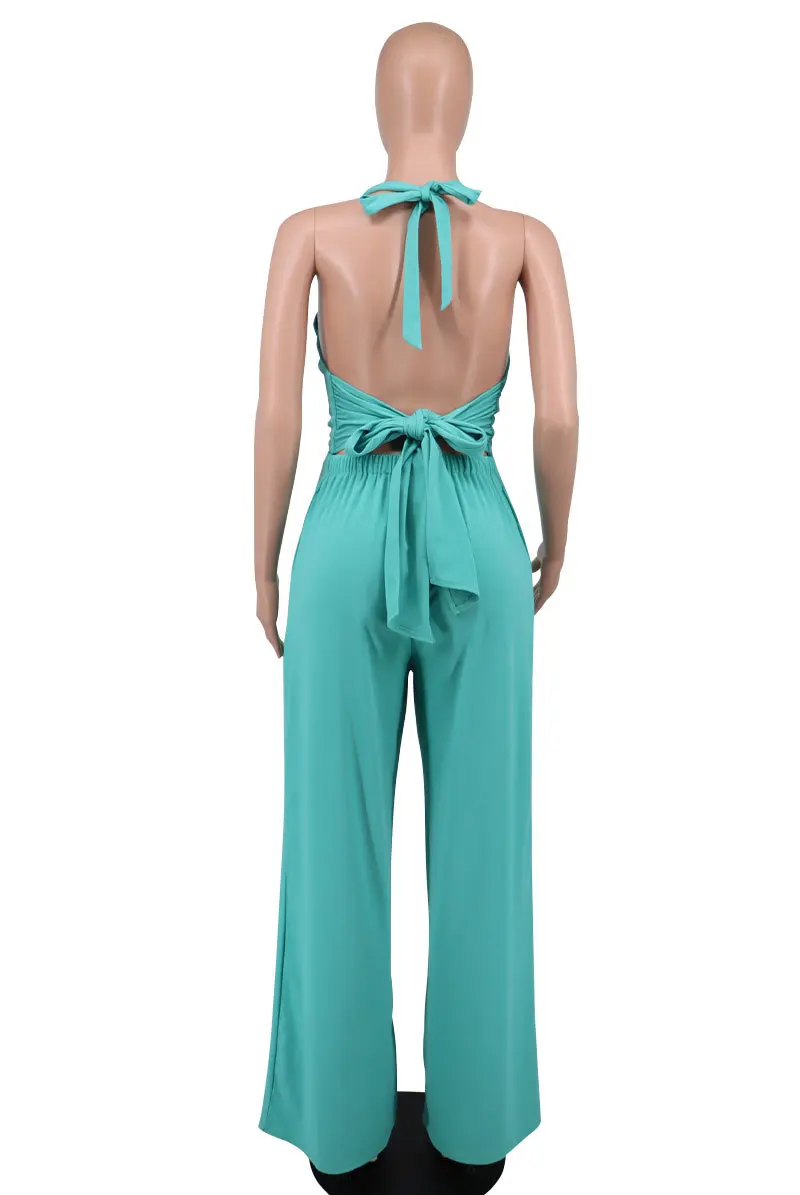 8649 New Arrival Fashion Sexy Casual Solid Color Lace Up Halter Jumpsuit Sleeveless Temperament Ol Bodysuit Women Clothing