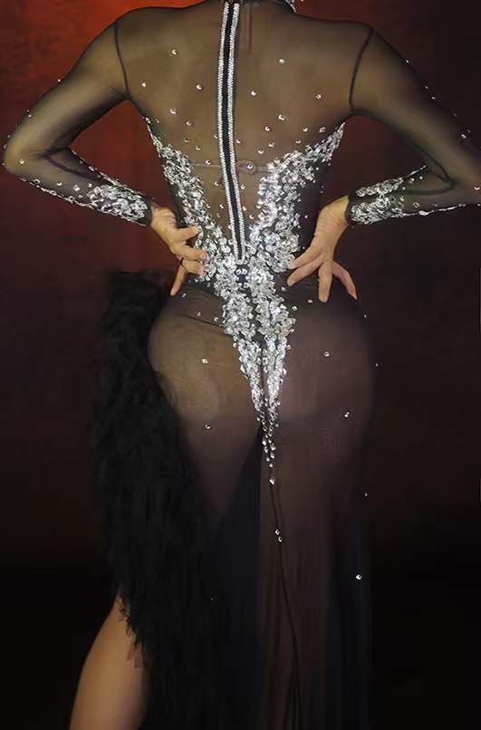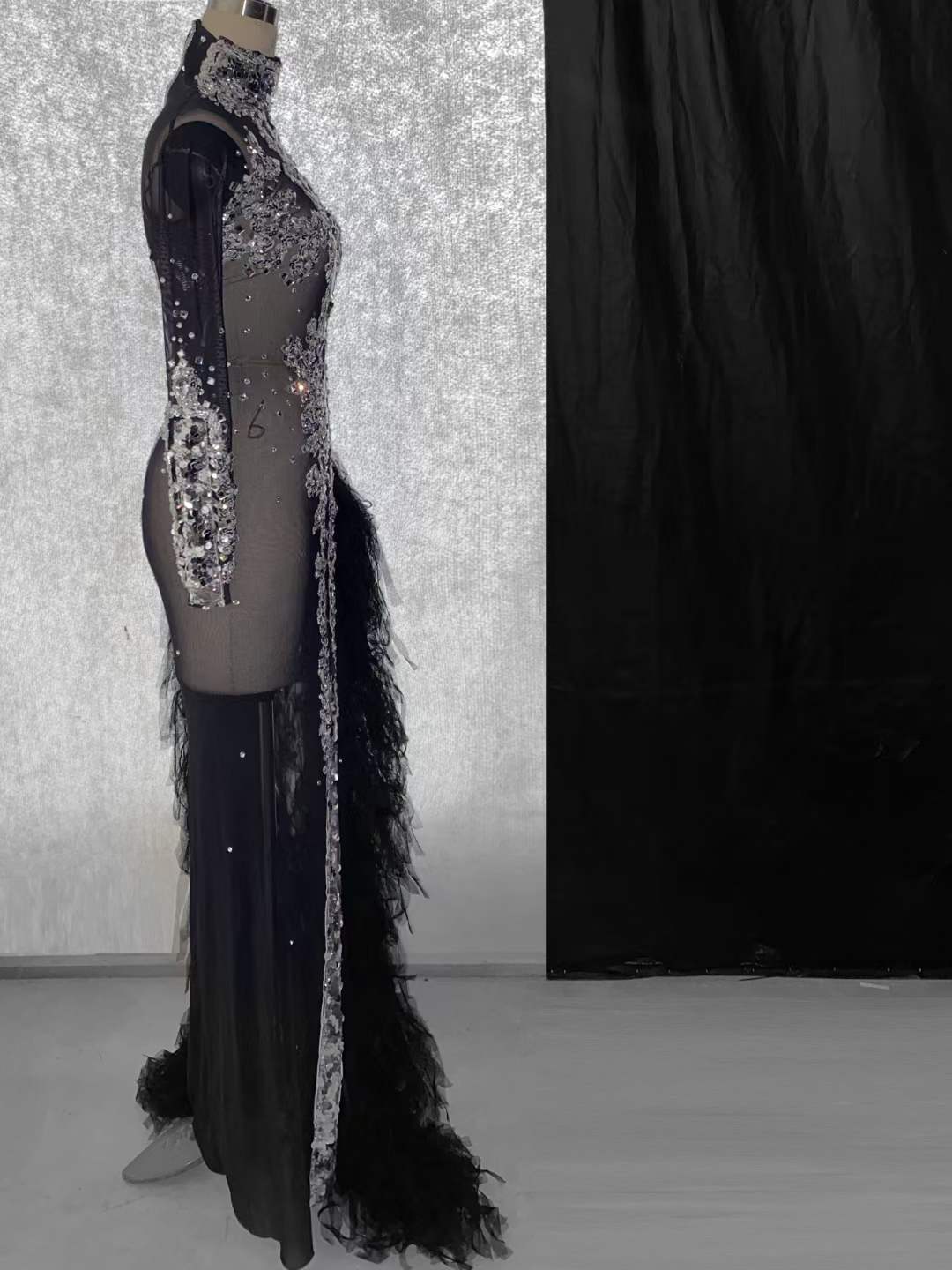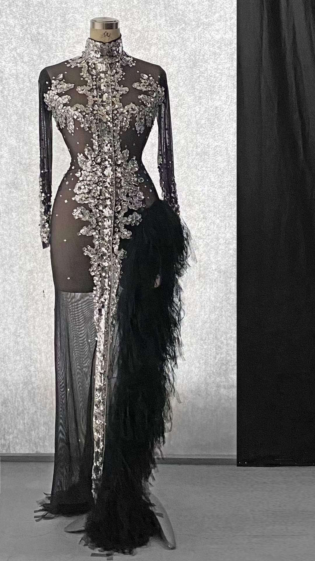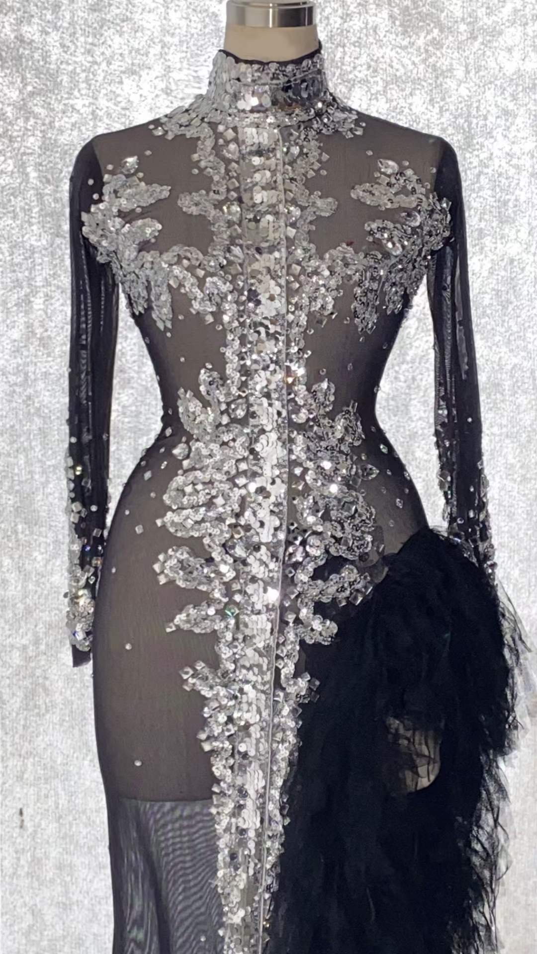 Long Sleeve Luxury Beaded Shiny Sequins Dress Hand Embroidery Feather Gowns For Women Evening Dresses