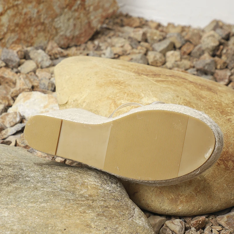 Aneikeh Punk Shallow Narrow Band Round Toe Wedges Sandals Party Ball Transparent PVC Braid Crystal Bow High Heels 2024 Women's