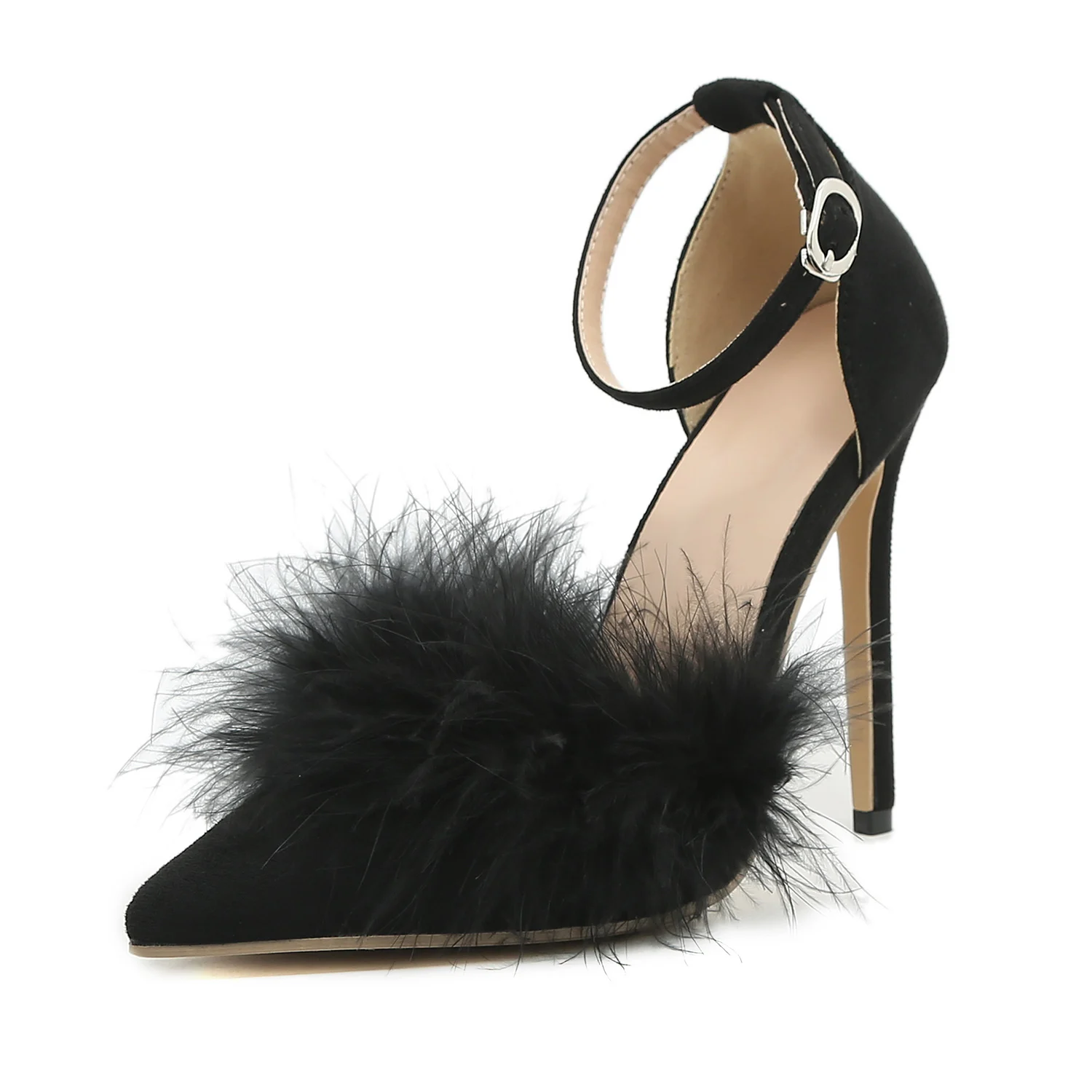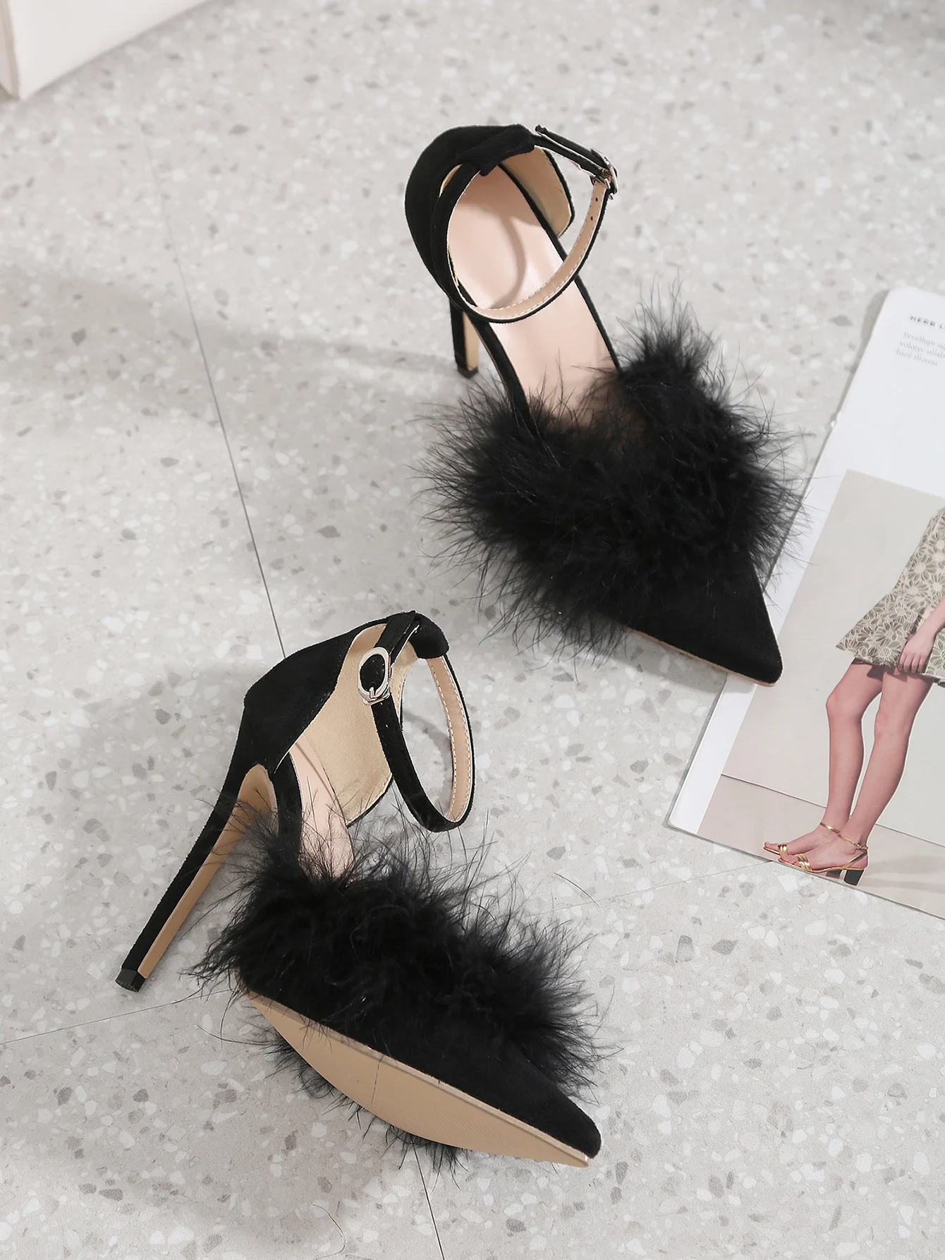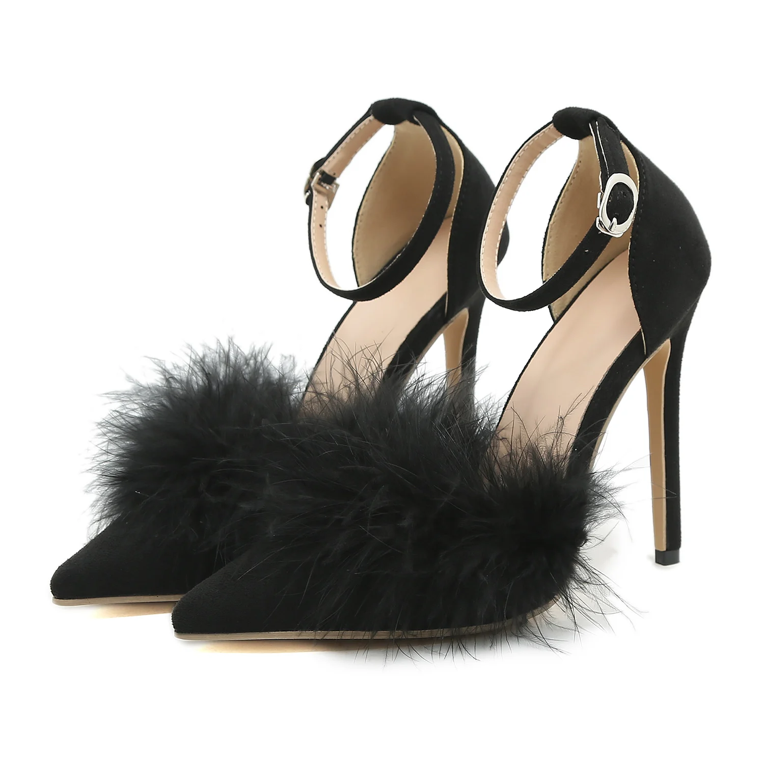 Aneikeh Sewing Flock Buckle Strap Party Solid Slingback Pumps Women Shoes Pointed Toe Shallow Shoes NEW Spring/Autumn Fashion