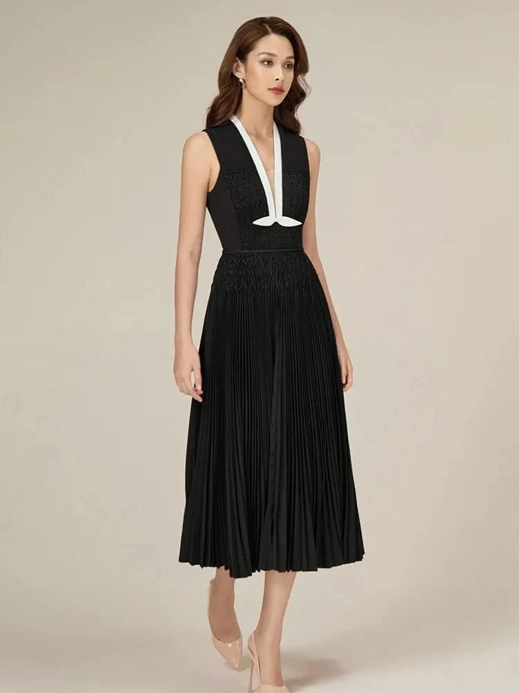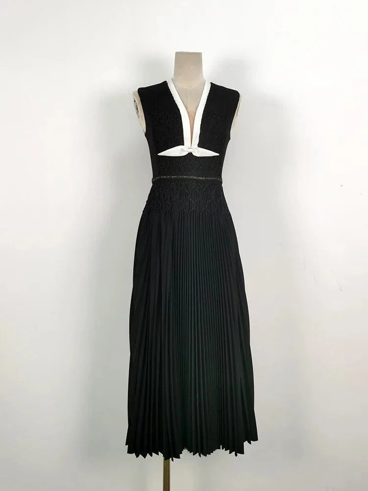 Bettergirl Fashion Niche Design Ruffle Knit Long Dress Women's Clothing 2024 Spring V-neck Black Sexy Elegant Women's Dresses