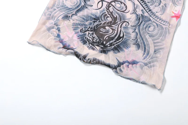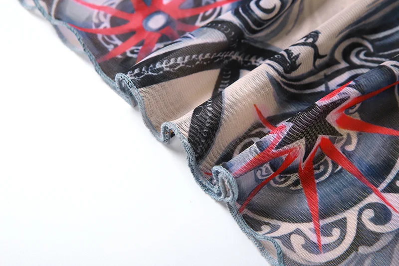 Bomblook C428DS Midi Outfits Stand Collar Spring Mesh Dress Bodycon Sexy Brand Print Dress For Women Slim See Through Dresses