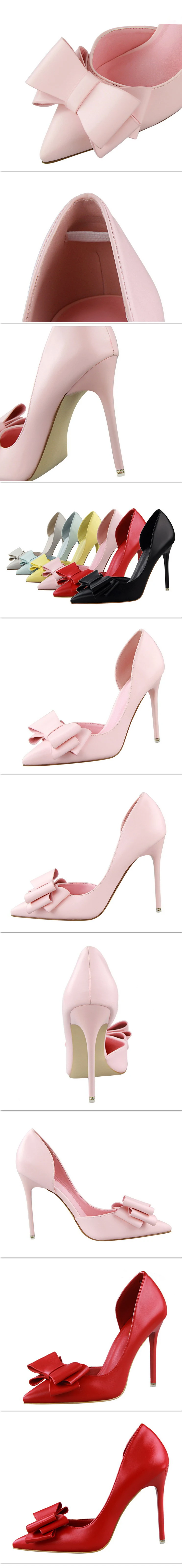 BUSY GIRL DS3004 Women Pumps Bow Knot High Stiletto Heel Pumps Pointed Toe Side Hollow Sexy Shoes