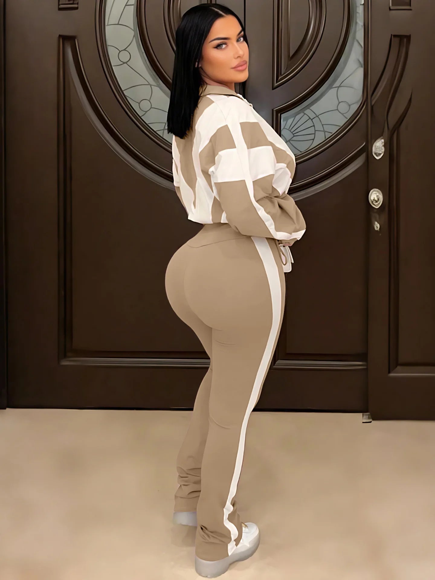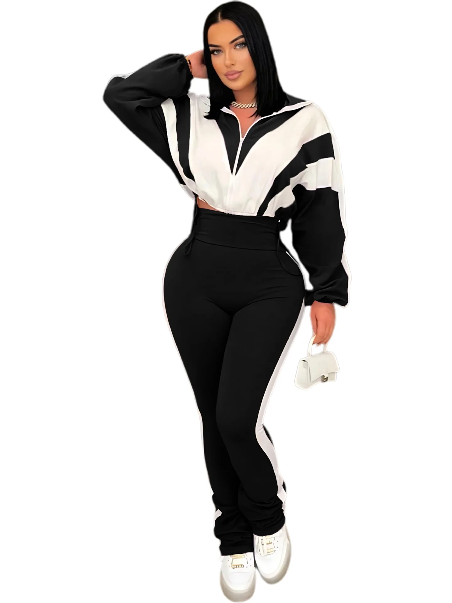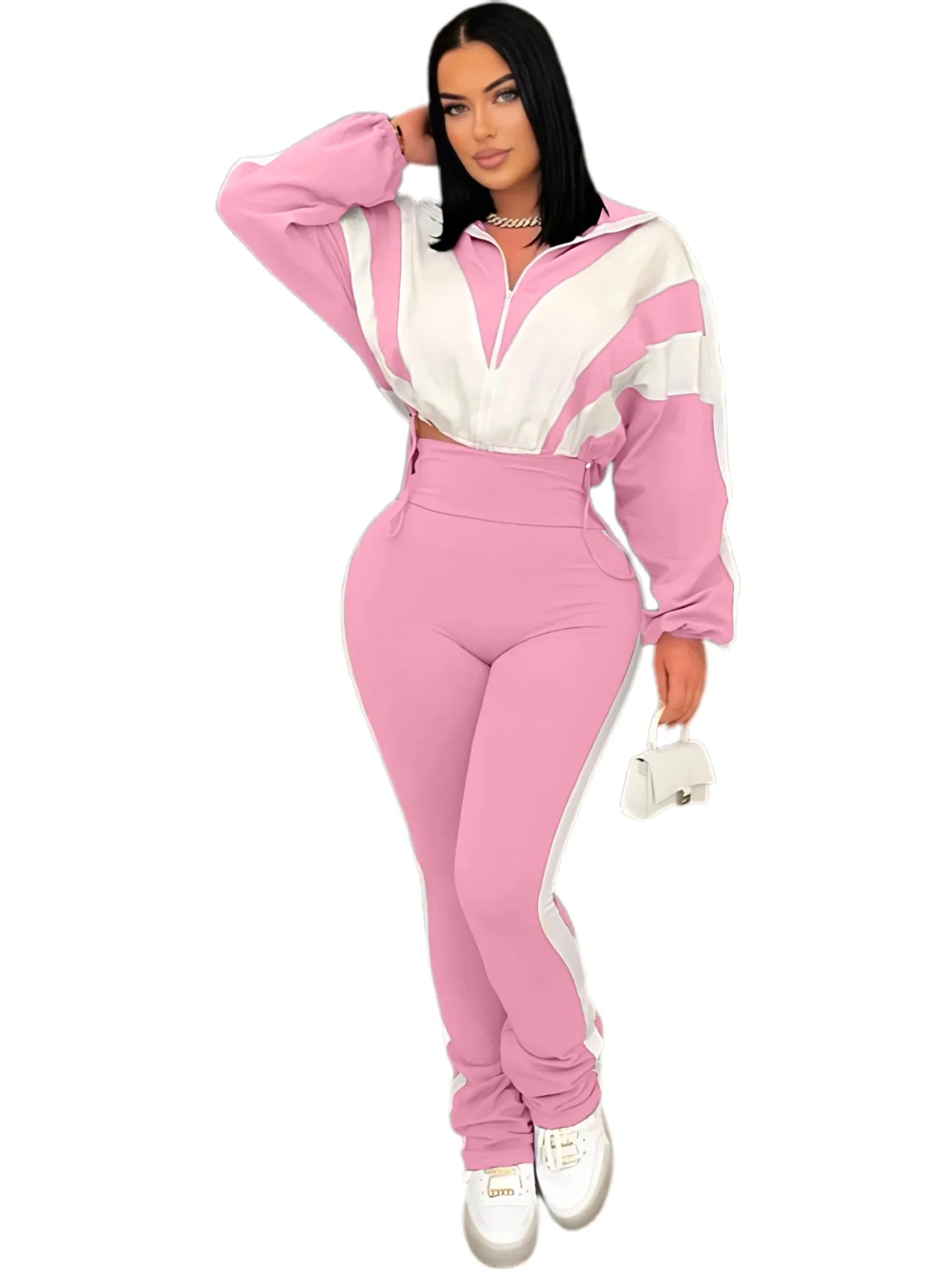 CM.YAYA Active Patchwork Women's Set Zipper Sweatshirt Jacket and Long Pants Suit 2025 Fall Two 2 Piece Sets Outfit Tracksuit