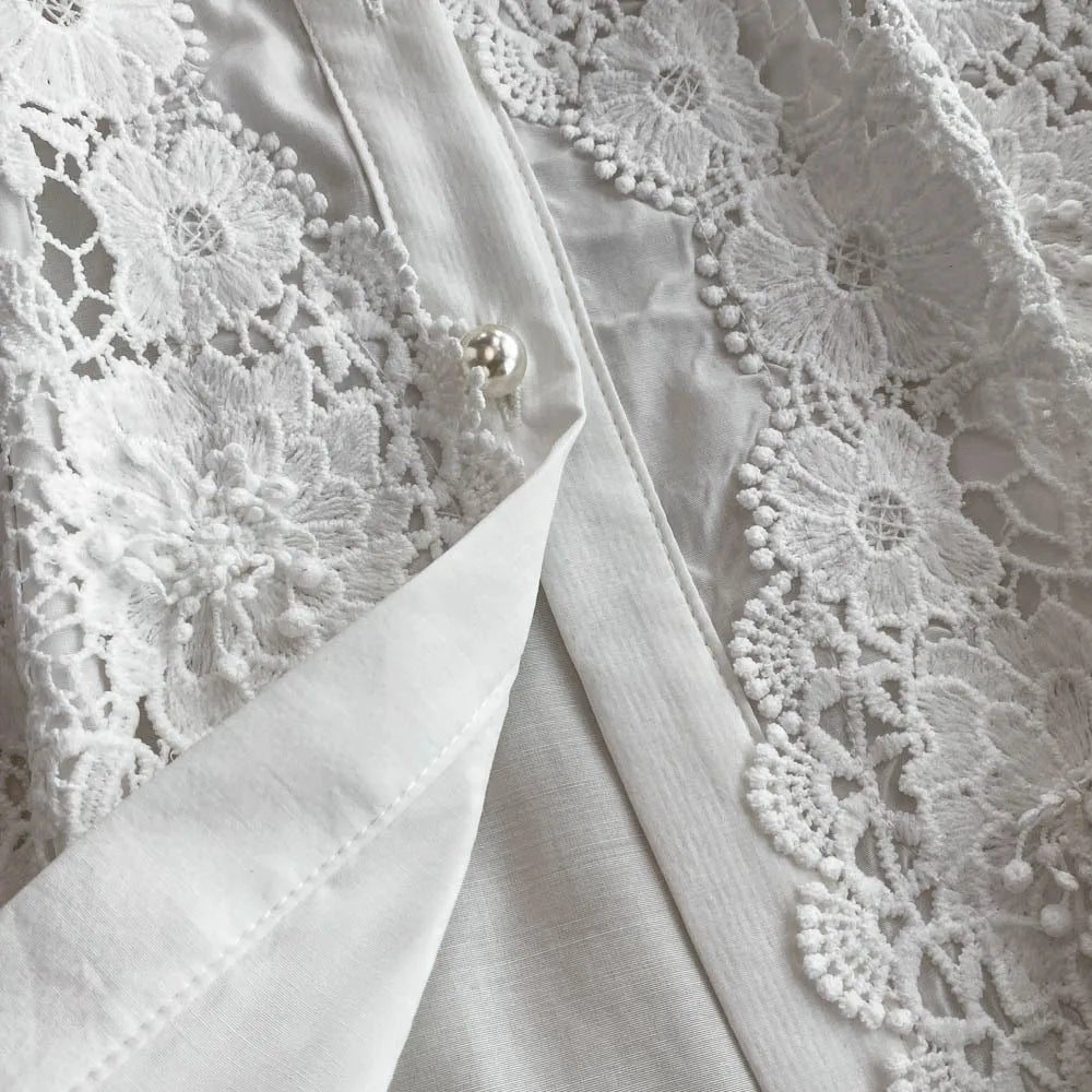 CM.YAYA Fashion Lace Embroidery Patchwork Women's Set Long Sleeve Shirt and Wide Leg Pants 2025 Vacation Two 2 Piece Sets Outfit