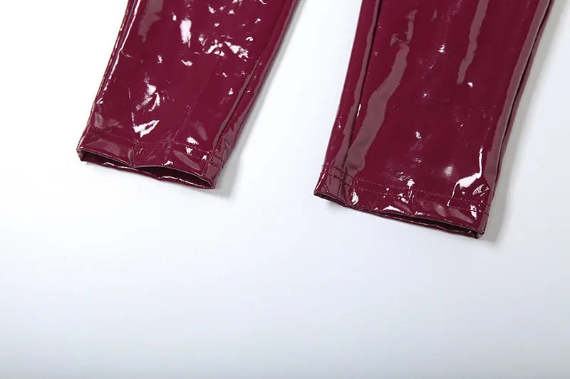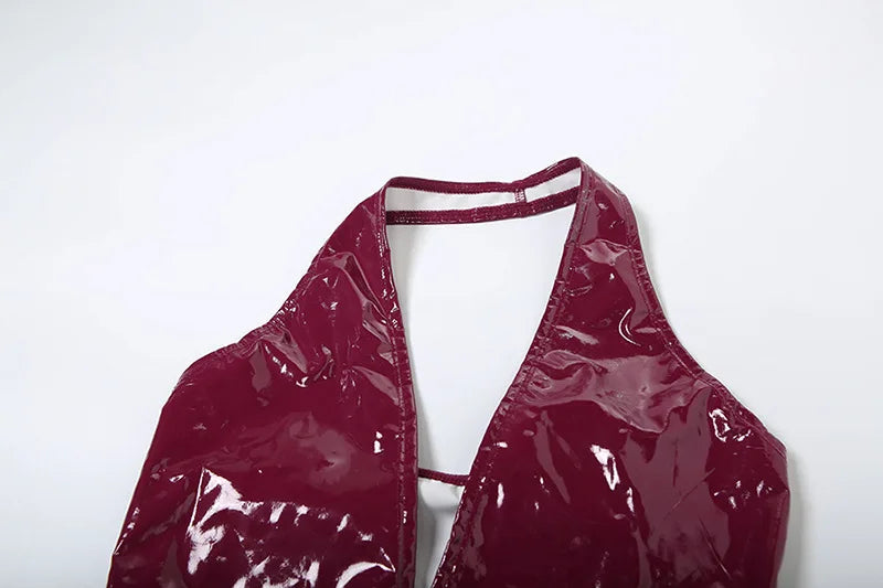 CM.YAYA Women Set PU Leather Halter V-neck Top + Pencil Pants Suits 2025 Fitness Streetwear Two 2 Piece Sets Outfits Tracksuit