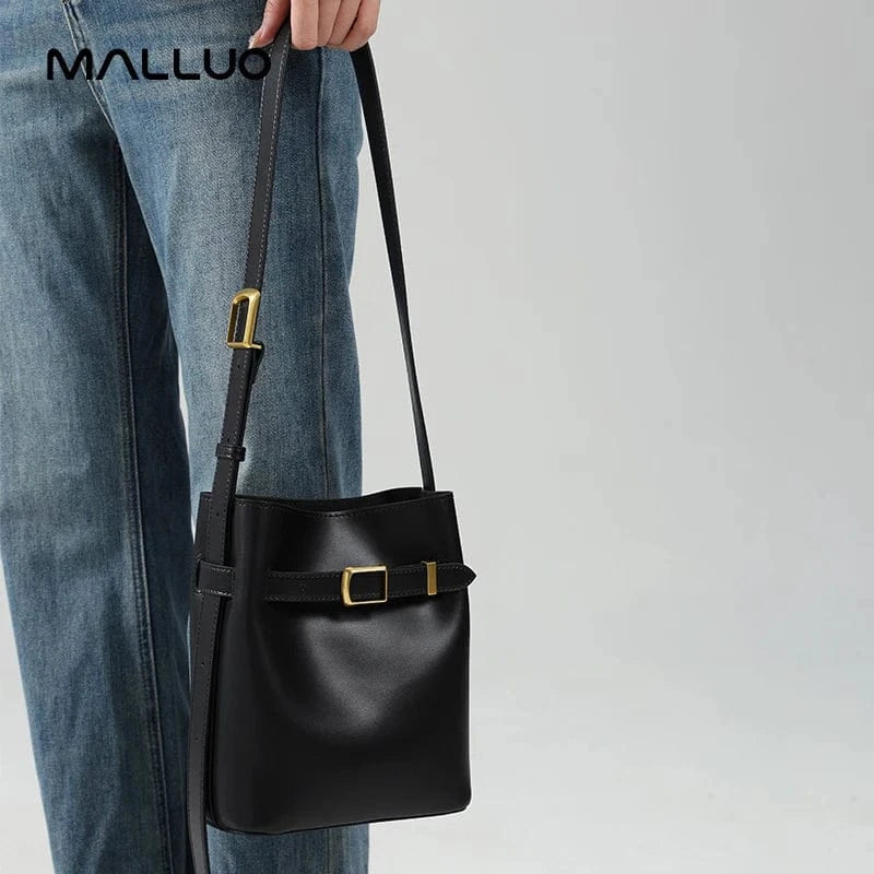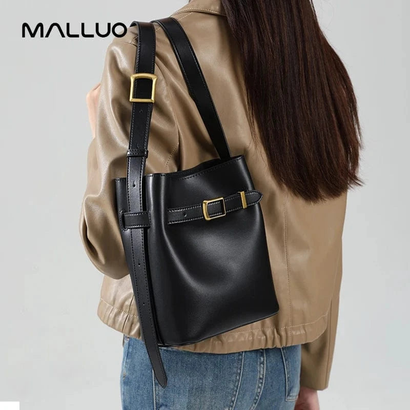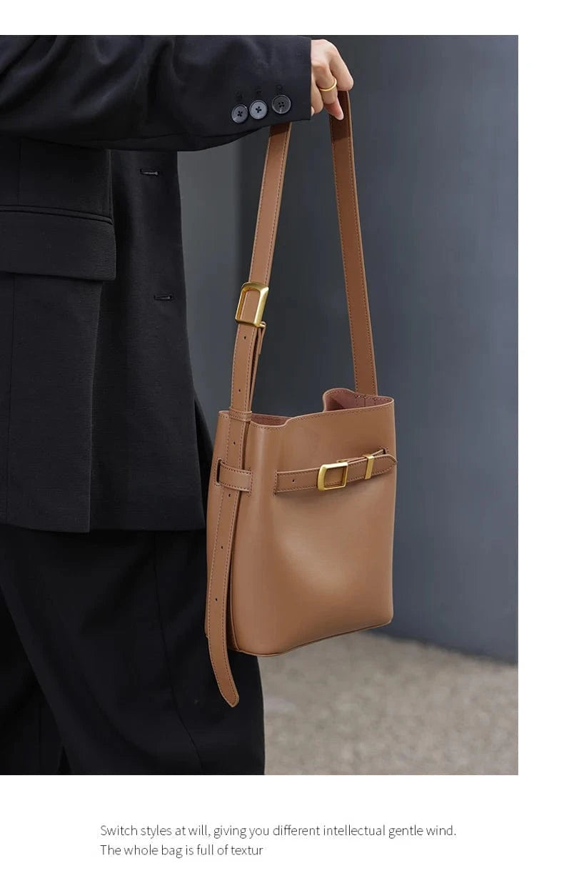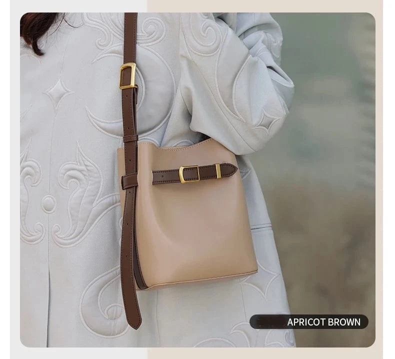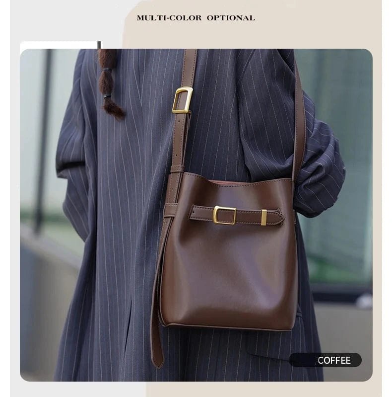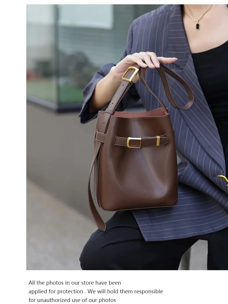 Cow Split Leather Bucket Bag Women Vintage messenger High Quality Simple Handbag Lady Shoulder Bag Luxury Female Crossbody Bags
