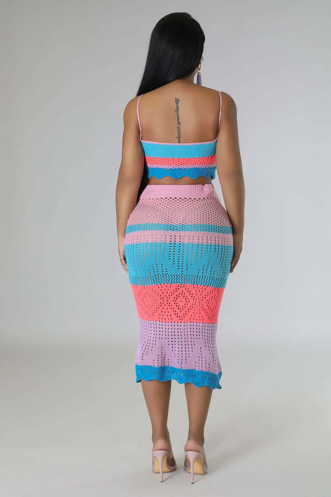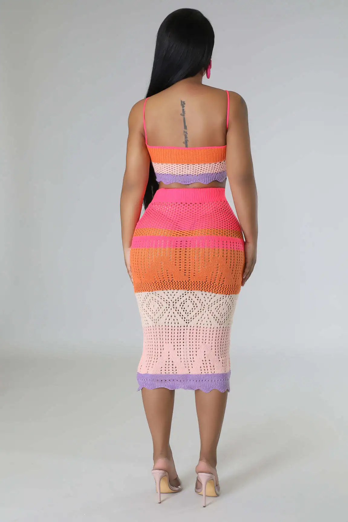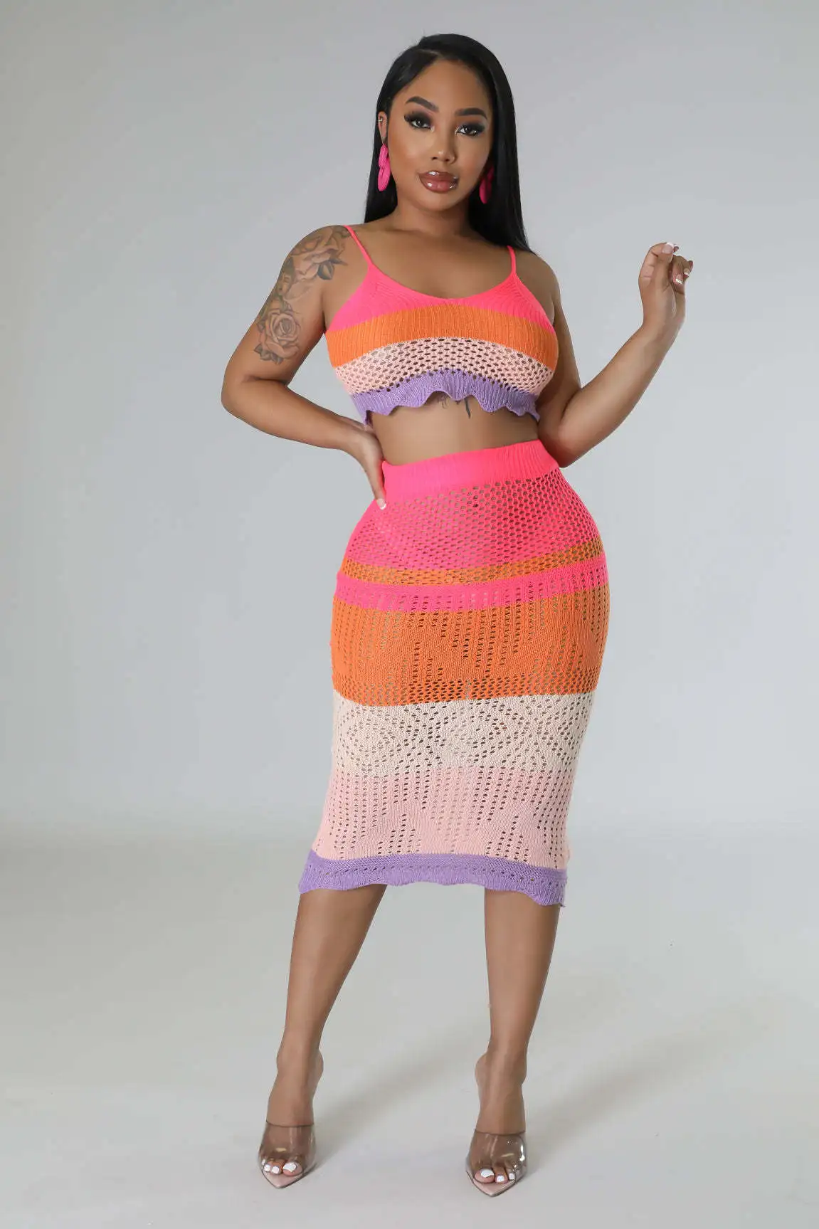 Crochet 2 Piece Skirt Top Set Matching Skirt with Crop Top Summer Dress Boho Clothing Bohemian 2 Piece Boho Skirt Set