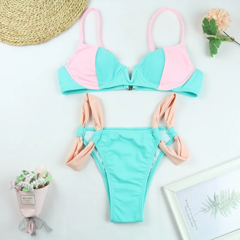 Custom 2022 swimwear high waist bathing suits v neck sexy swimsuits for women patchwork micro mini bikini