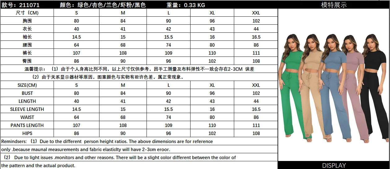*Design: Short sleeve crew neck rib t shirt and matched rib pant