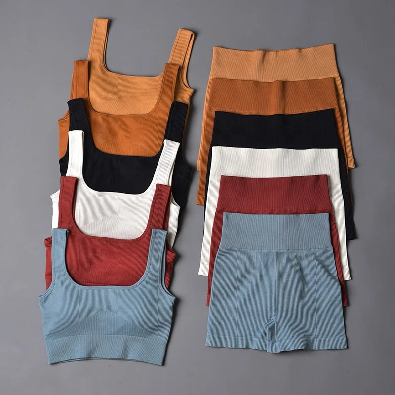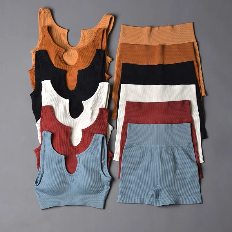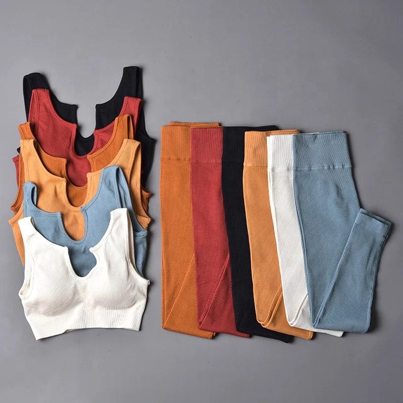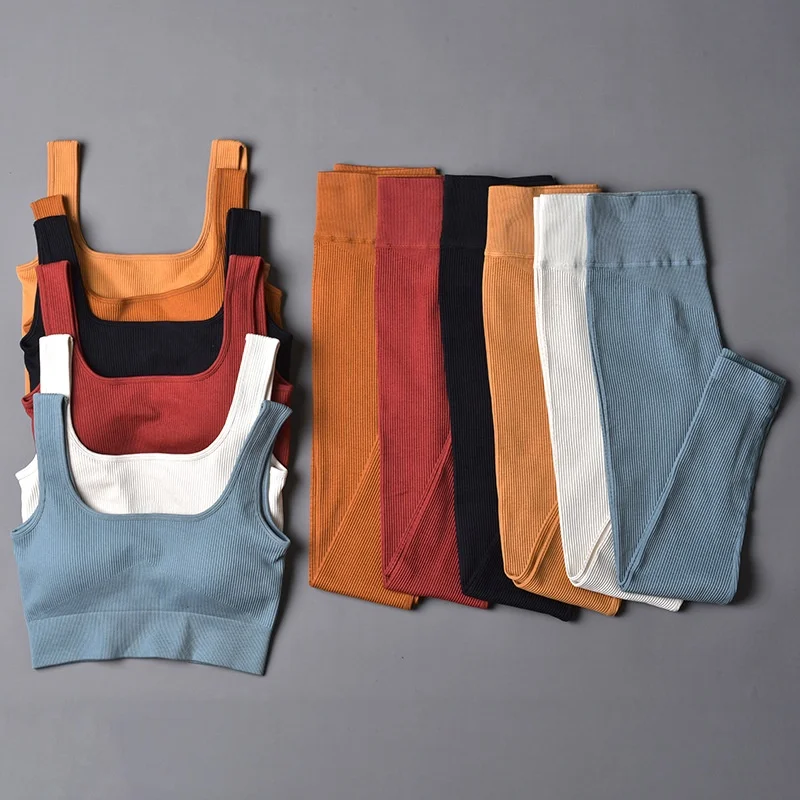 Custom New Solid Color Fashion Two Piece Women Clothing Sexy Yoga Sport Bra Leggings Set Gym Wear Women