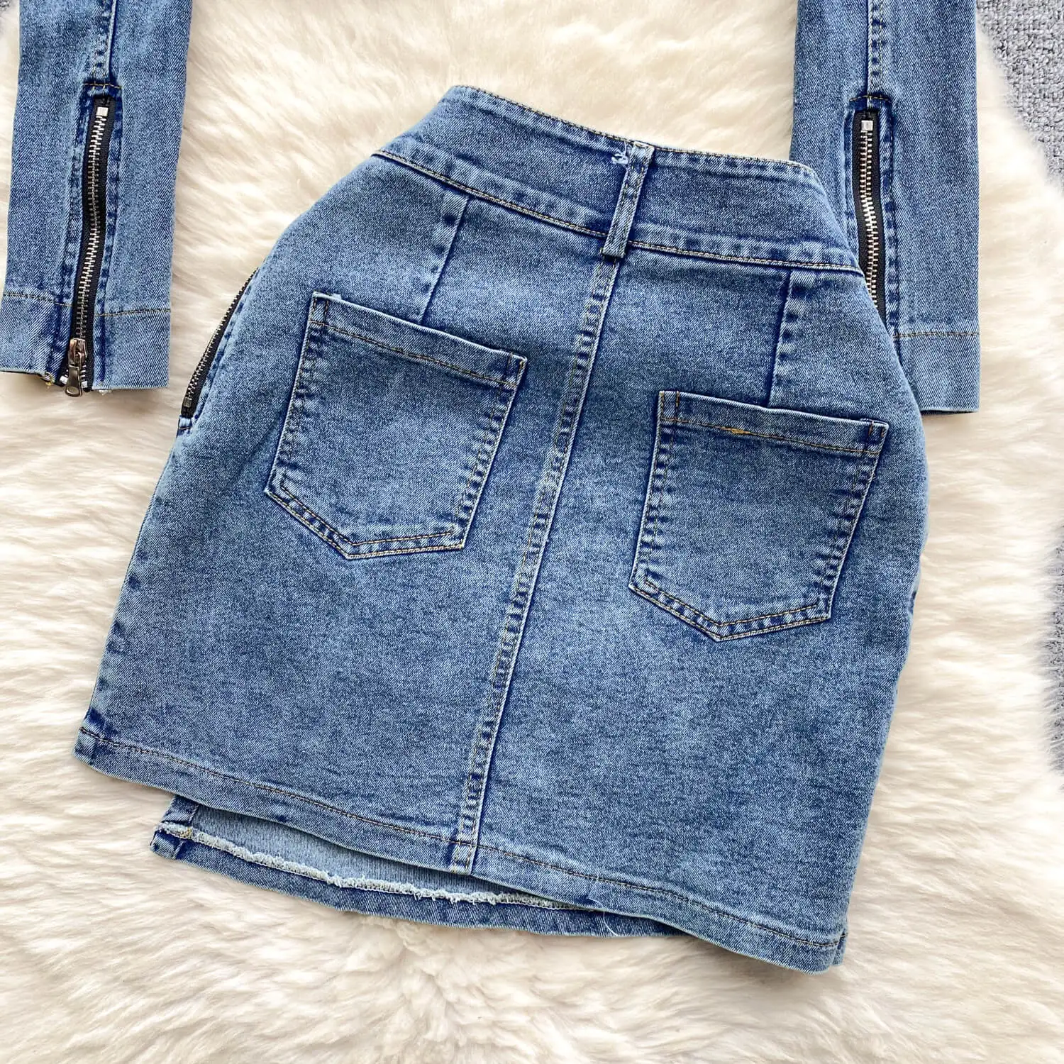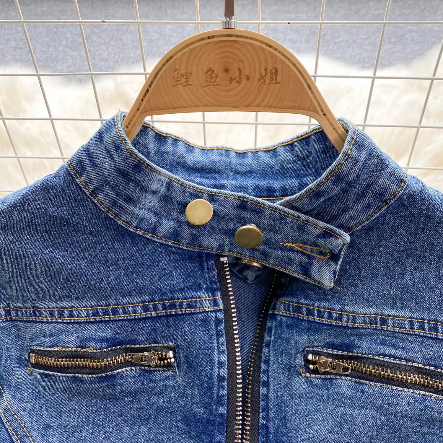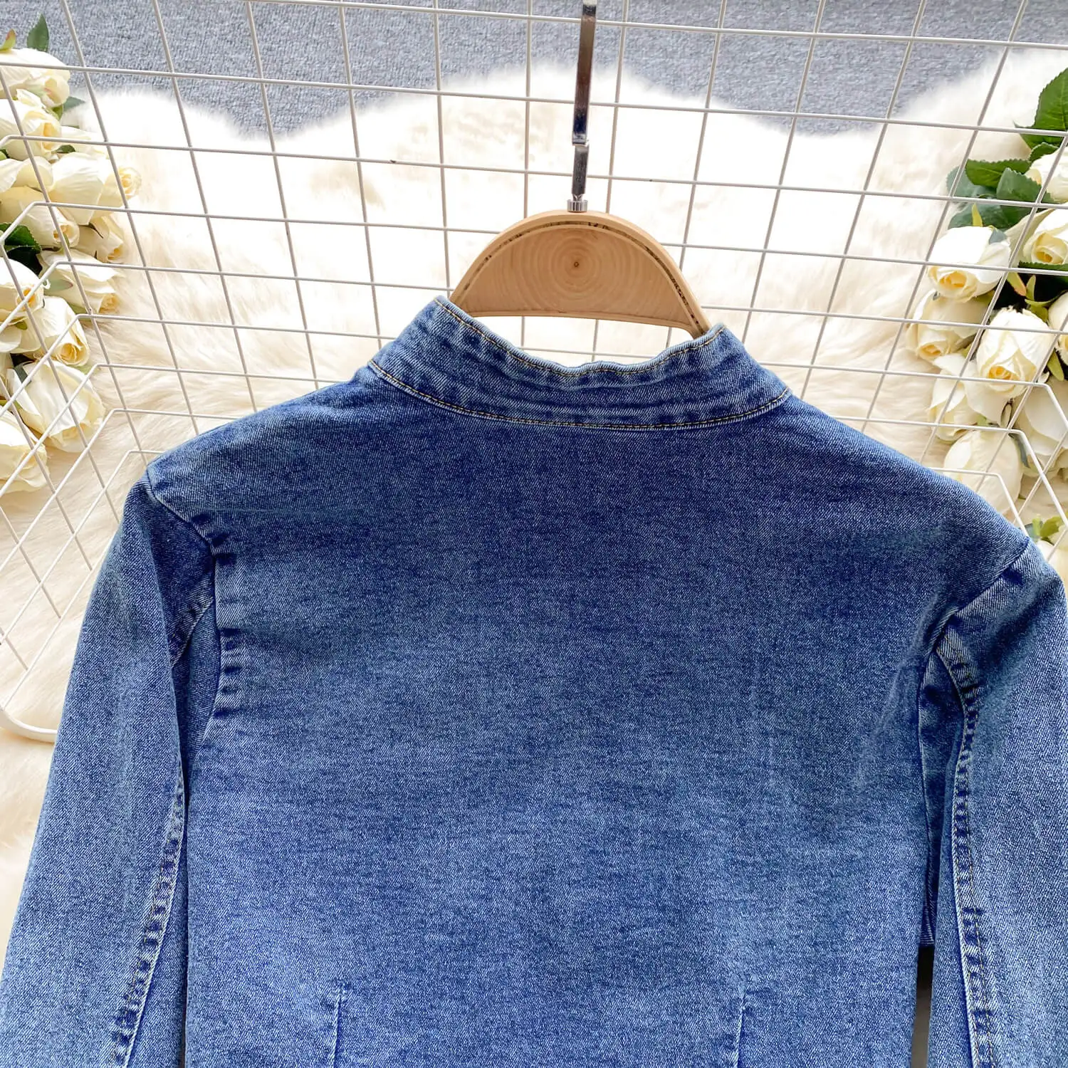 Customized Clothing Oem Factory Women Jacket Subtle Stretch Denim Fabric With Button Cuffs