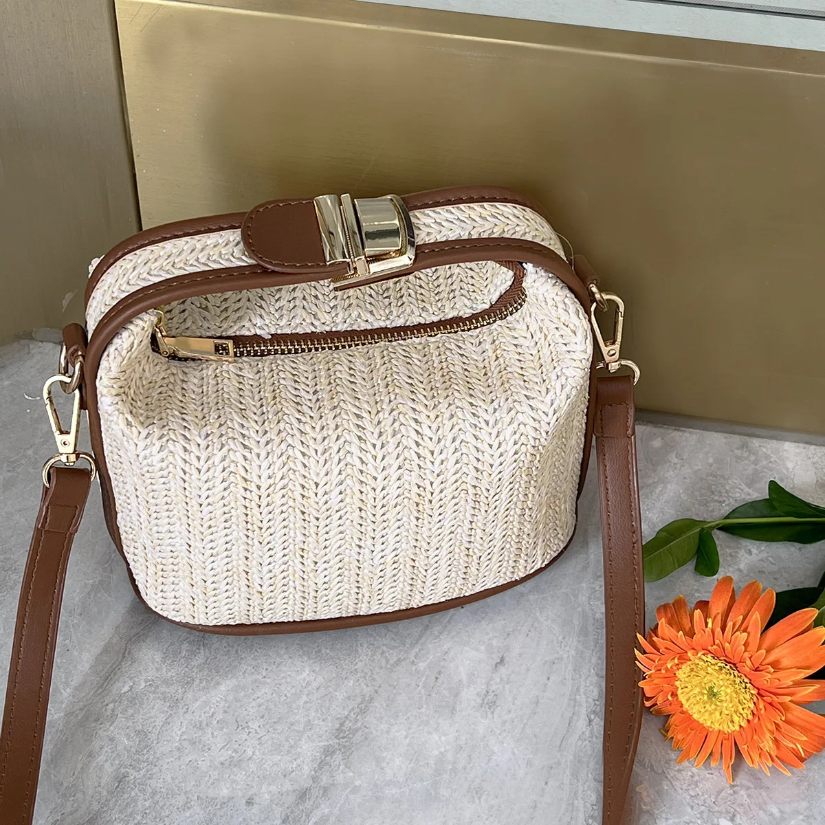 Customized Logo Sacs De Plage Straw Bags Shoulder Bag Summer Beach Bags Rattan Handbag For Women