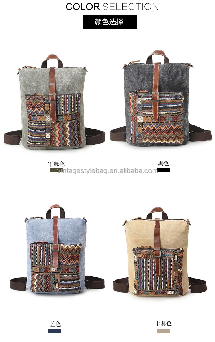 Customized New Ethnic Canvas Backpack For Women National Backpacks Leisure Travel Rucksack Embroidery Student School Bag