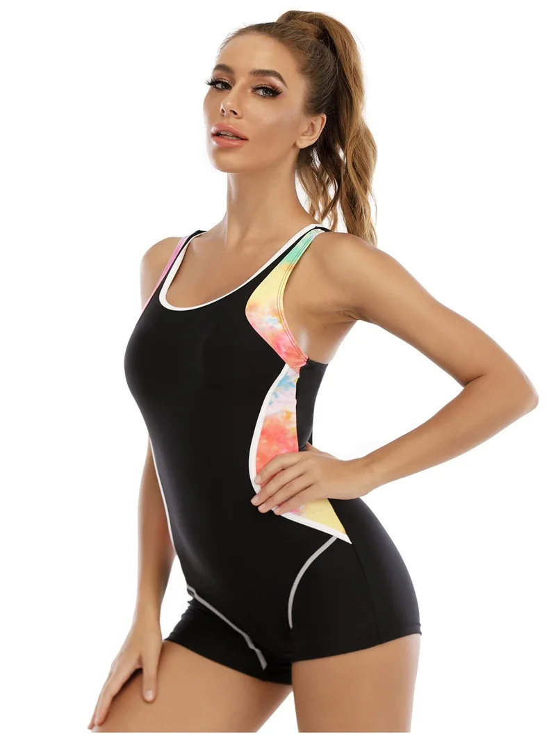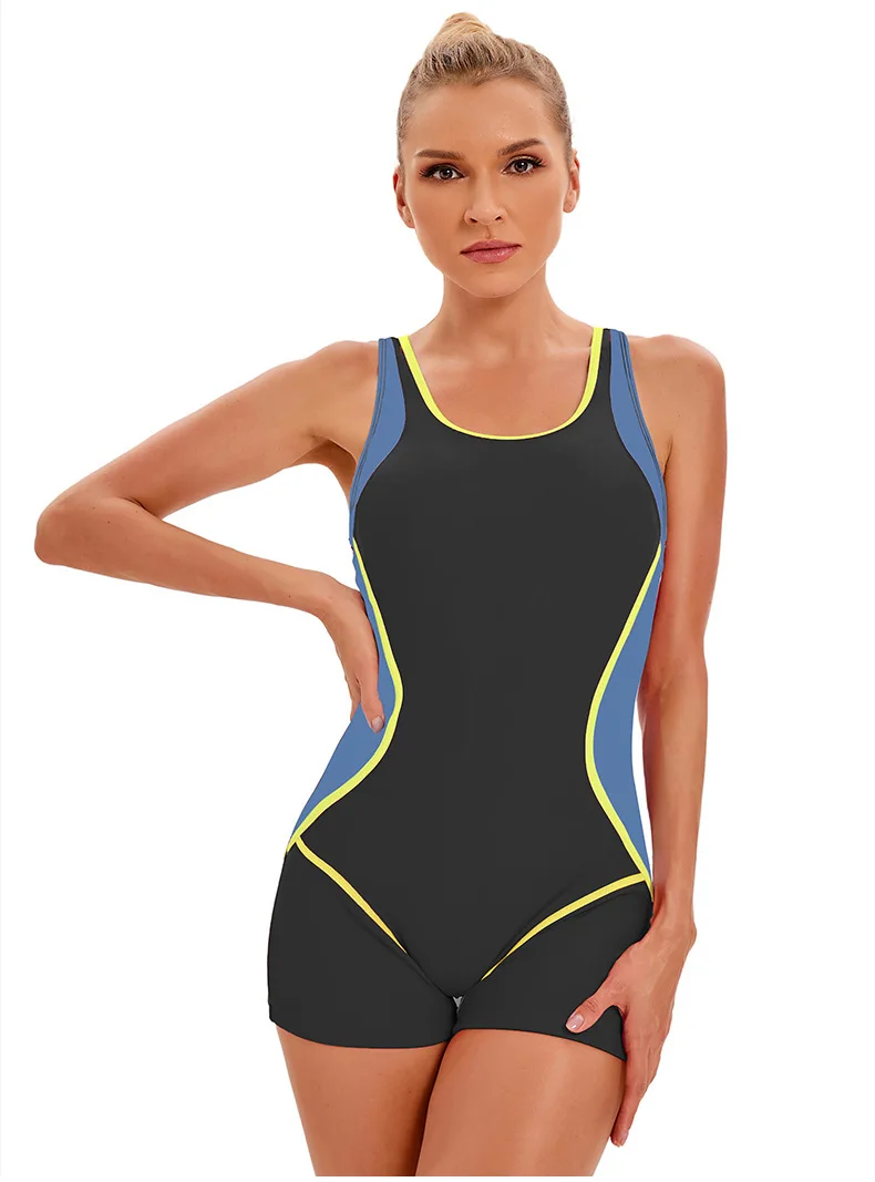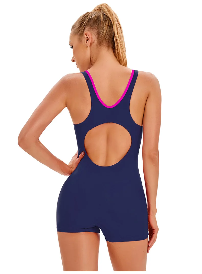 DAMOCHIC Custom Logo Fitness Swimwear Customized One Piece Sport Swimsuit Back Cutout Color Block Elastic Fitness Swimwear Women Wholesale Supplier
