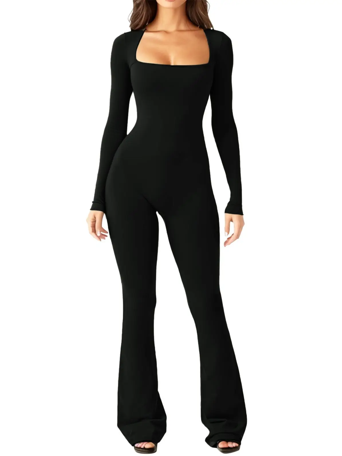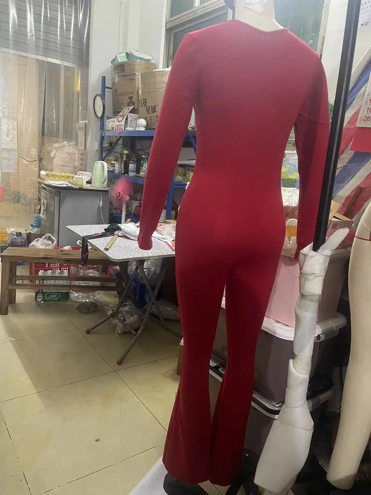 DAMOCHIC Lady Jumpsuit Playsuit Bodysuits Bodycon Autumn Winter Long Sleeves Jumpsuit High Stretch Tight Skinny Long Jumpsuits