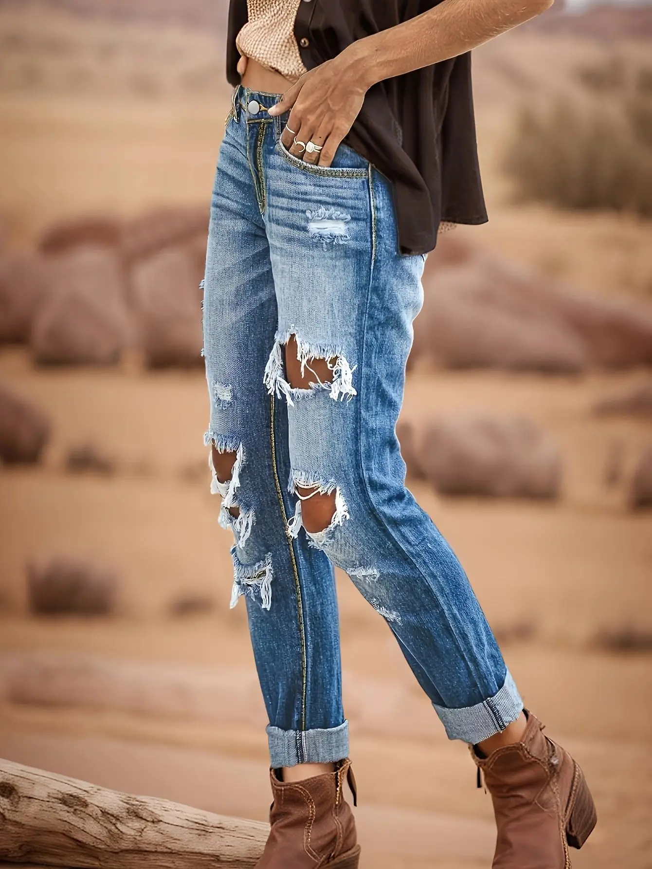 DE0125RV Fashion Hollow Out High Waist Denim Bodycon Jeans Sehe Fashion