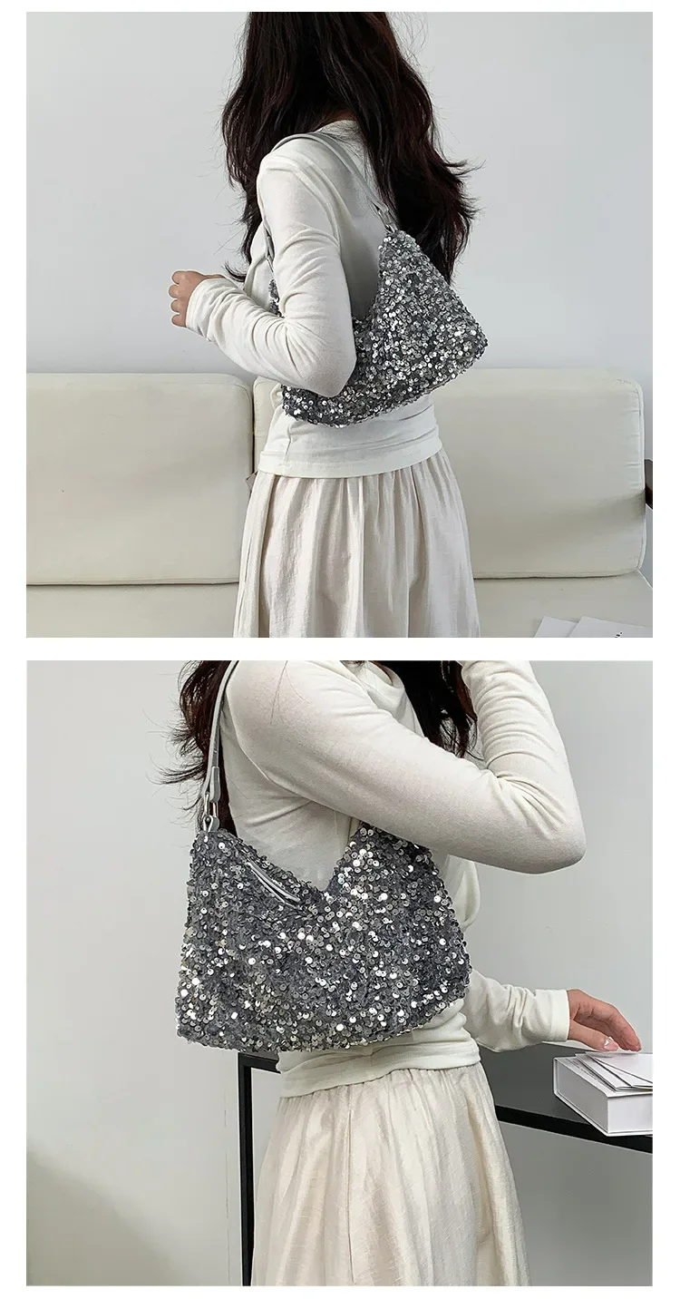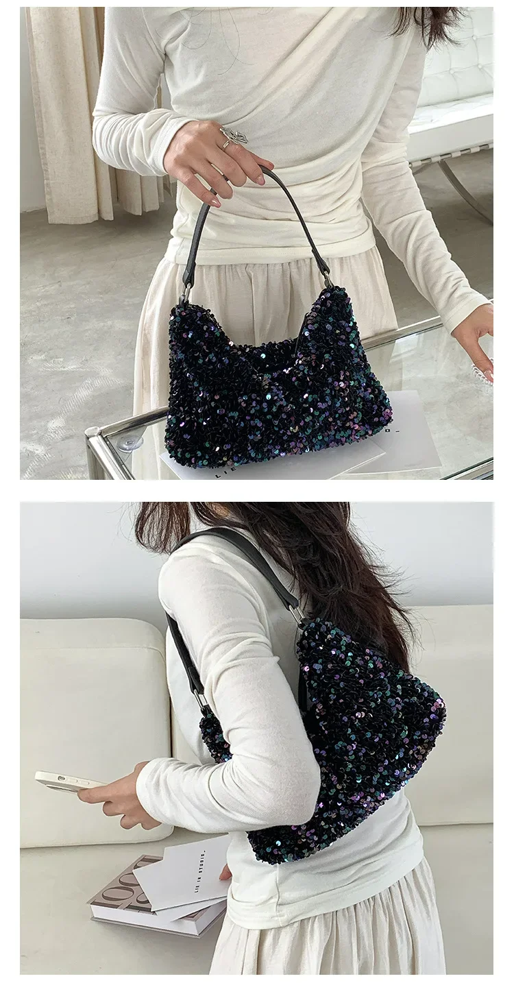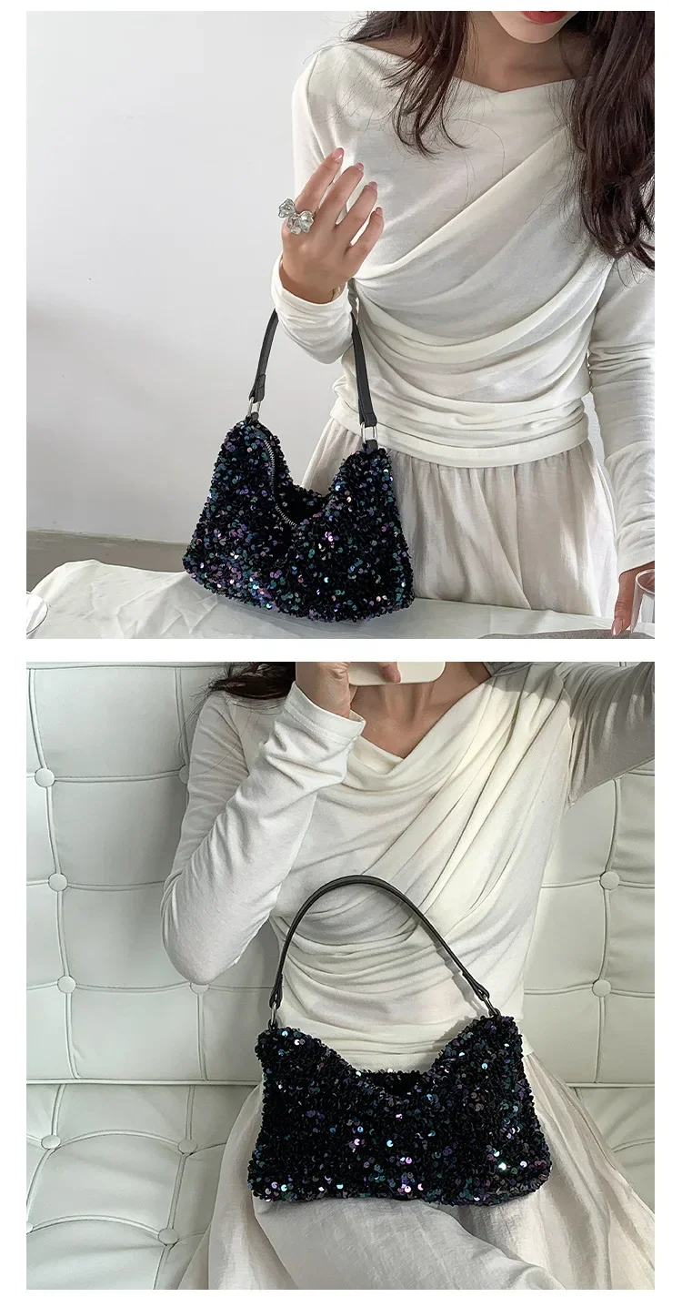 Designer Sequin Purses and Handbags Trend Shoulder Bag Hobos Underarm Bags for Women 2024