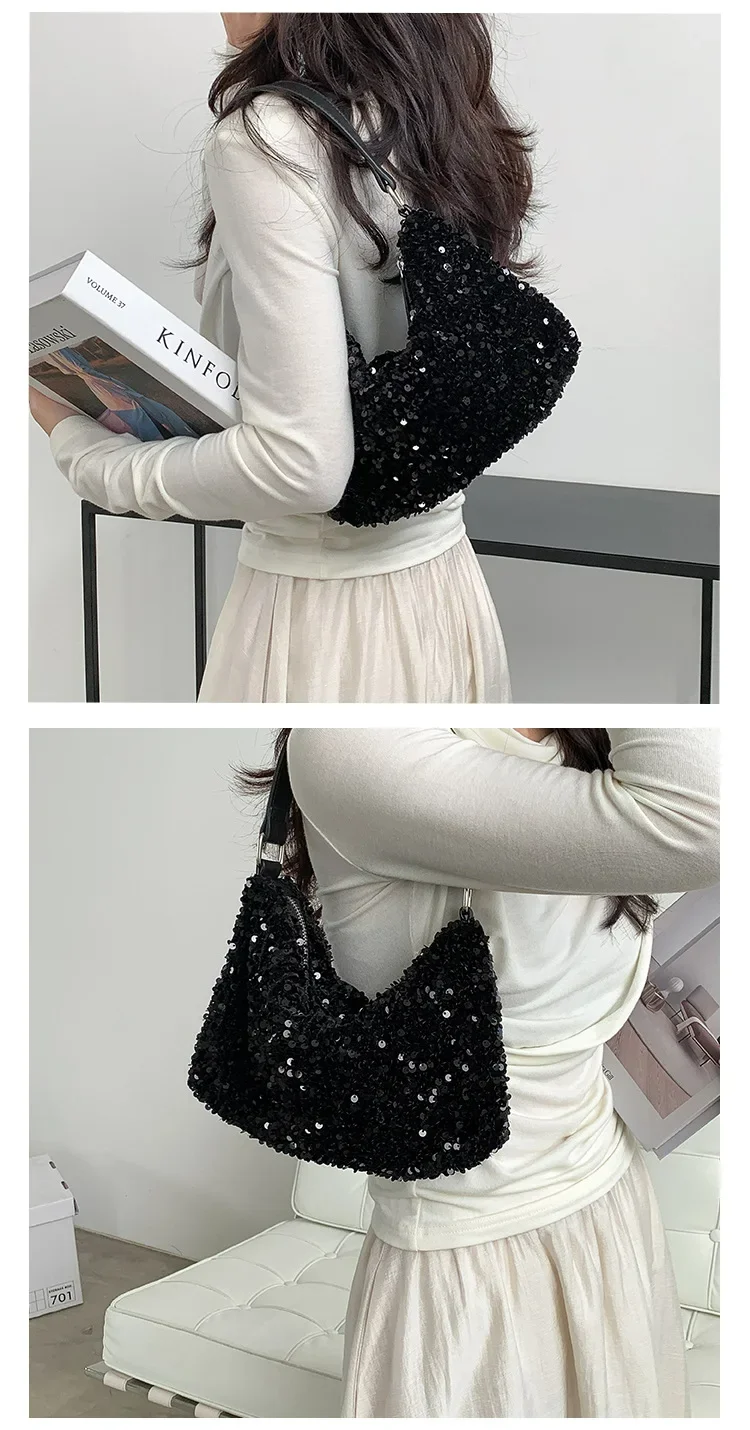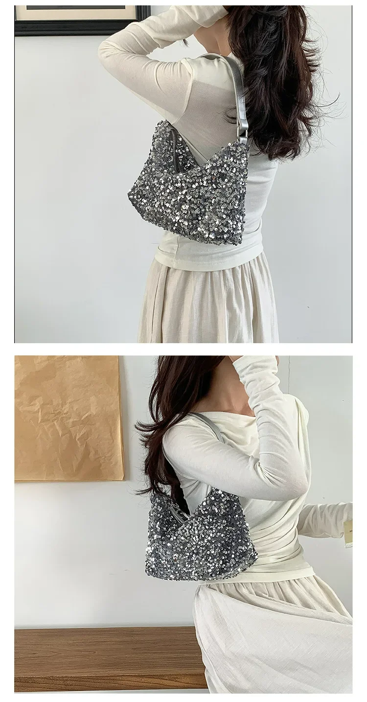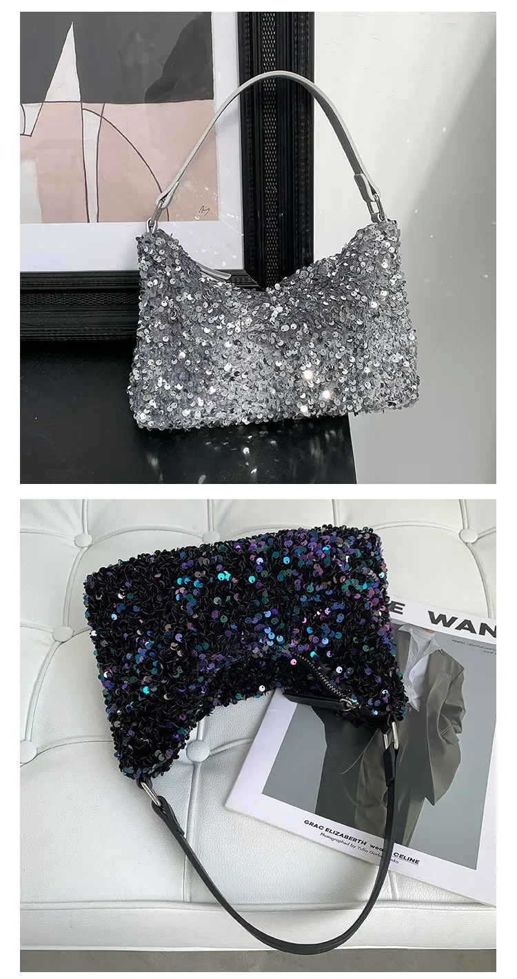 Designer Sequin Purses and Handbags Trend Shoulder Bag Hobos Underarm Bags for Women 2024